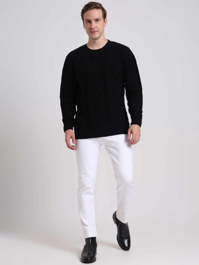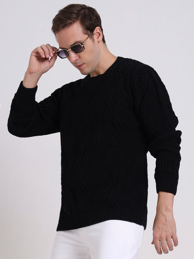 Woven in pure lambswool, the Noir Vale Pullover embodies understated elegance. Its subtle cable pattern flows seamlessly into a sleek silhouette, offering warmth with refined sophistication. A versatile essential for layering or wearing on its own.