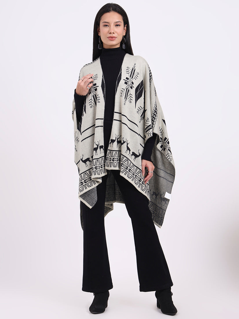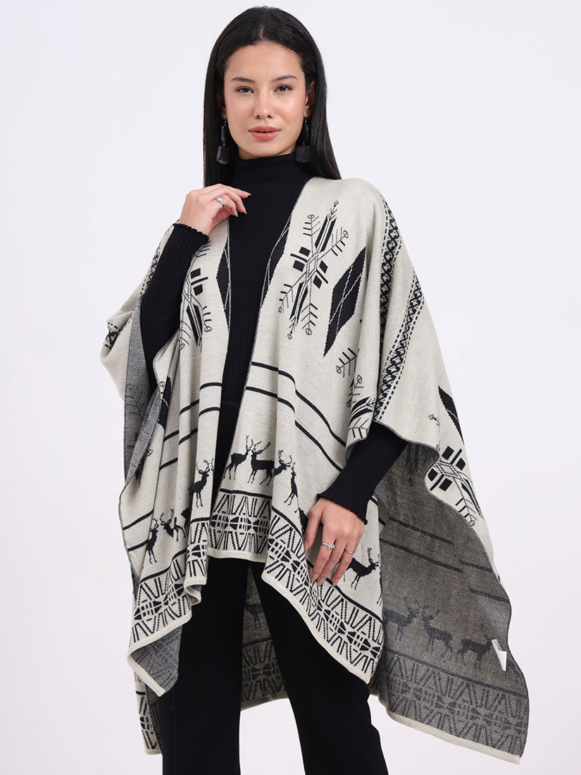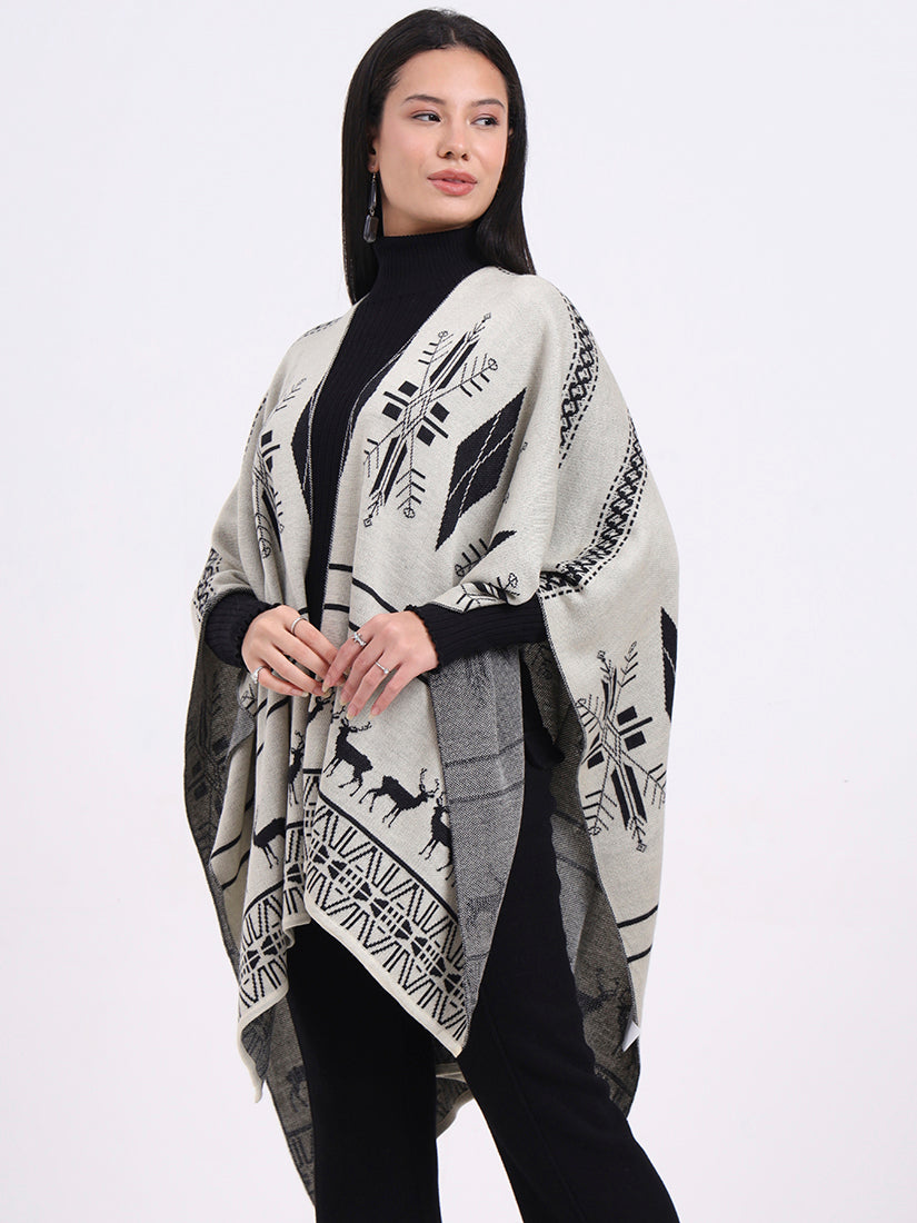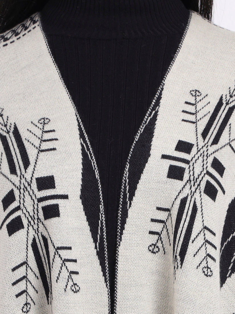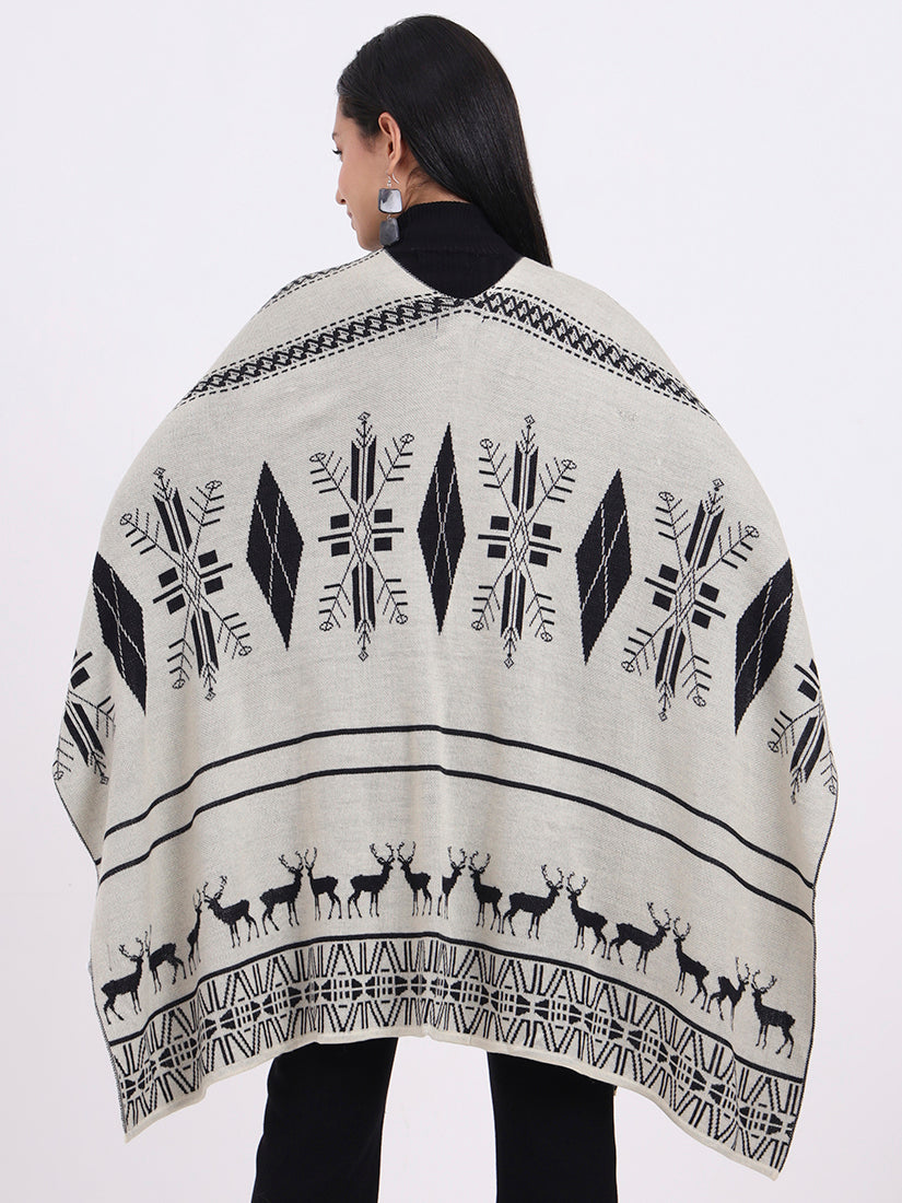 A harmonious blend of black and cream woven into geometric patterns reminiscent of alpine artistry. The bold contrast and artisanal weave bring a refined yet modern touch to cool-weather dressing.