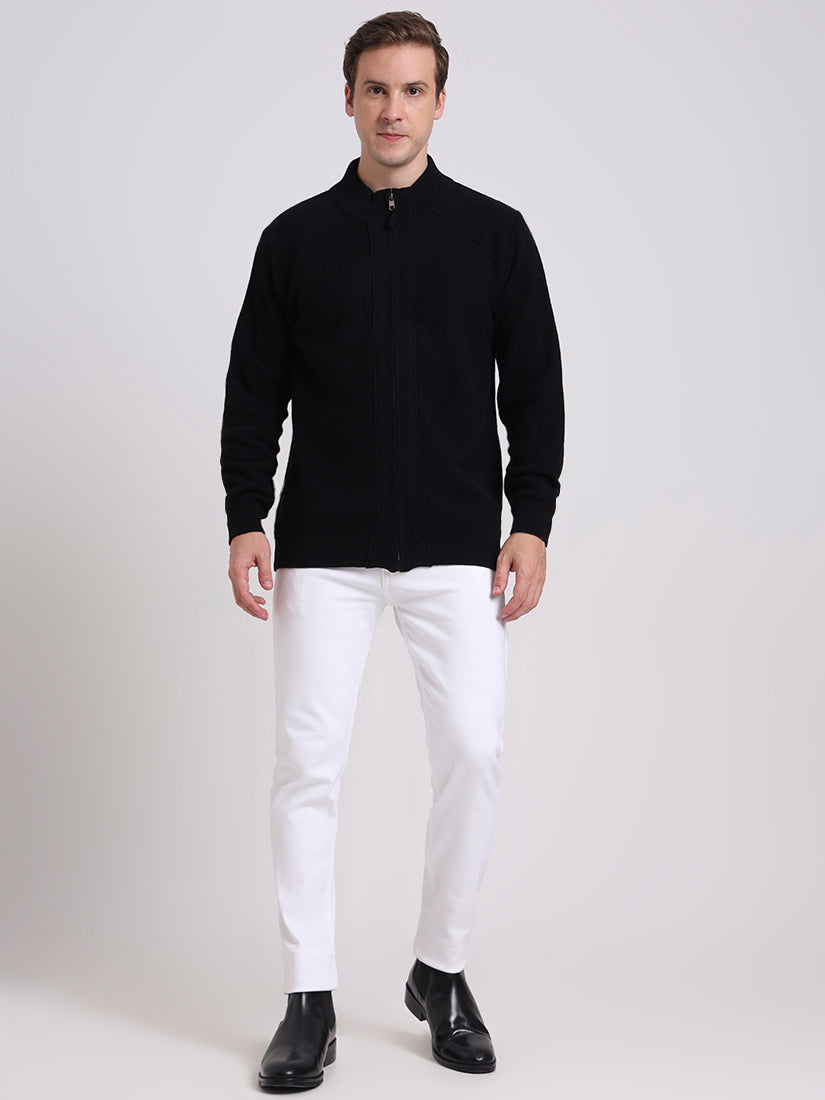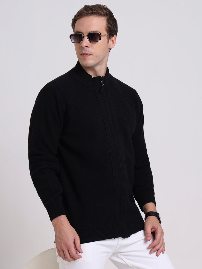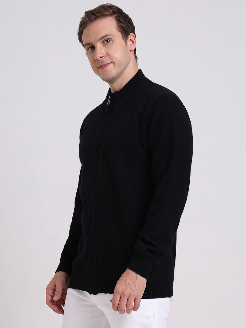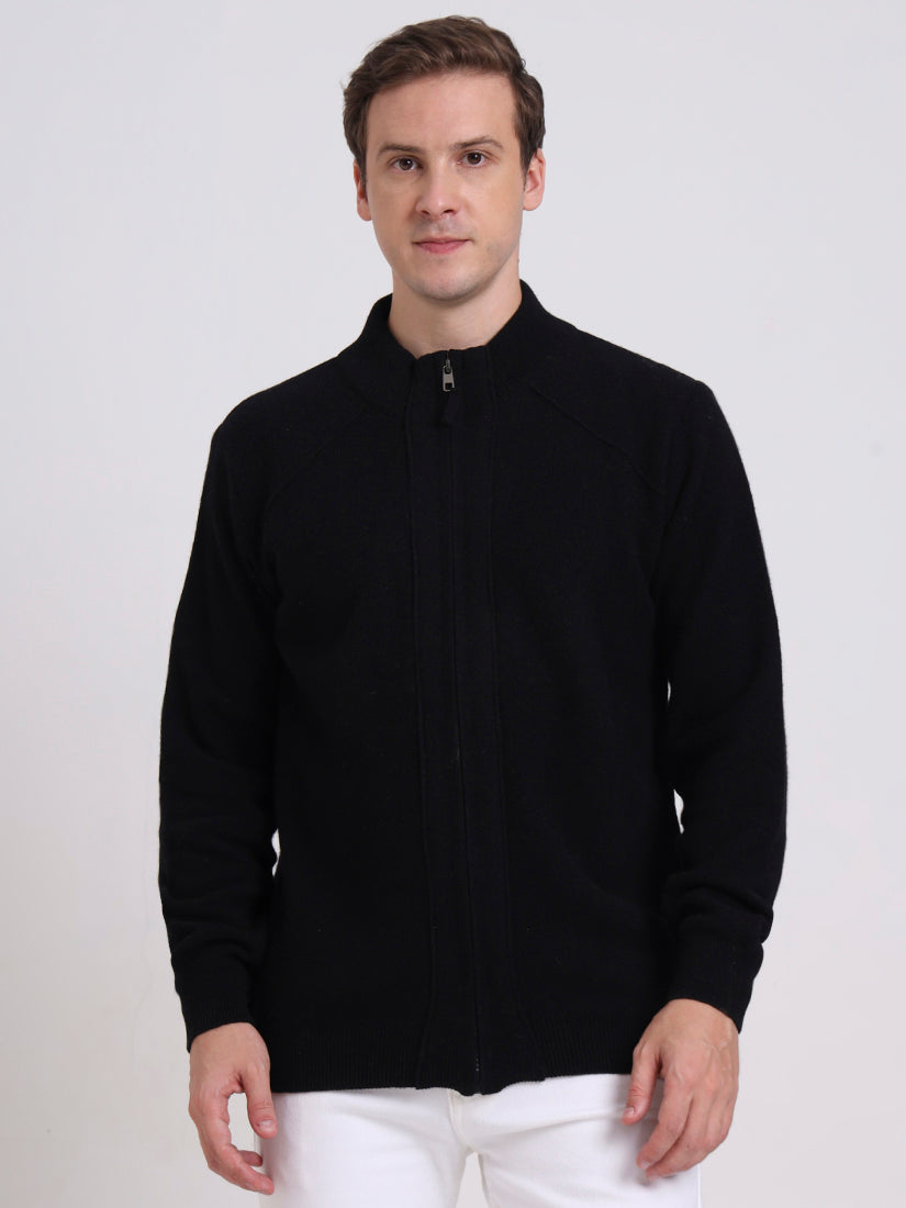 Pure and commanding, Obsidian Night offers unmatched versatility. In lambswool, the black full-zip cardigan becomes an anchor of effortless style.