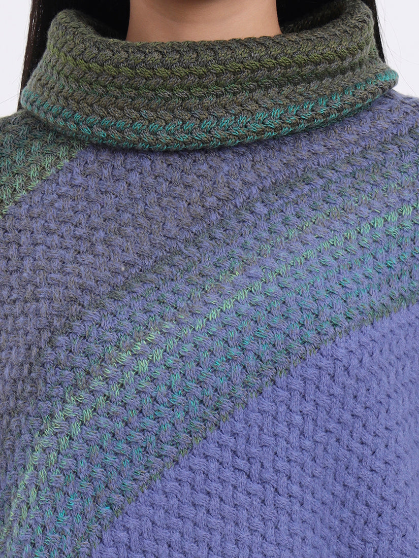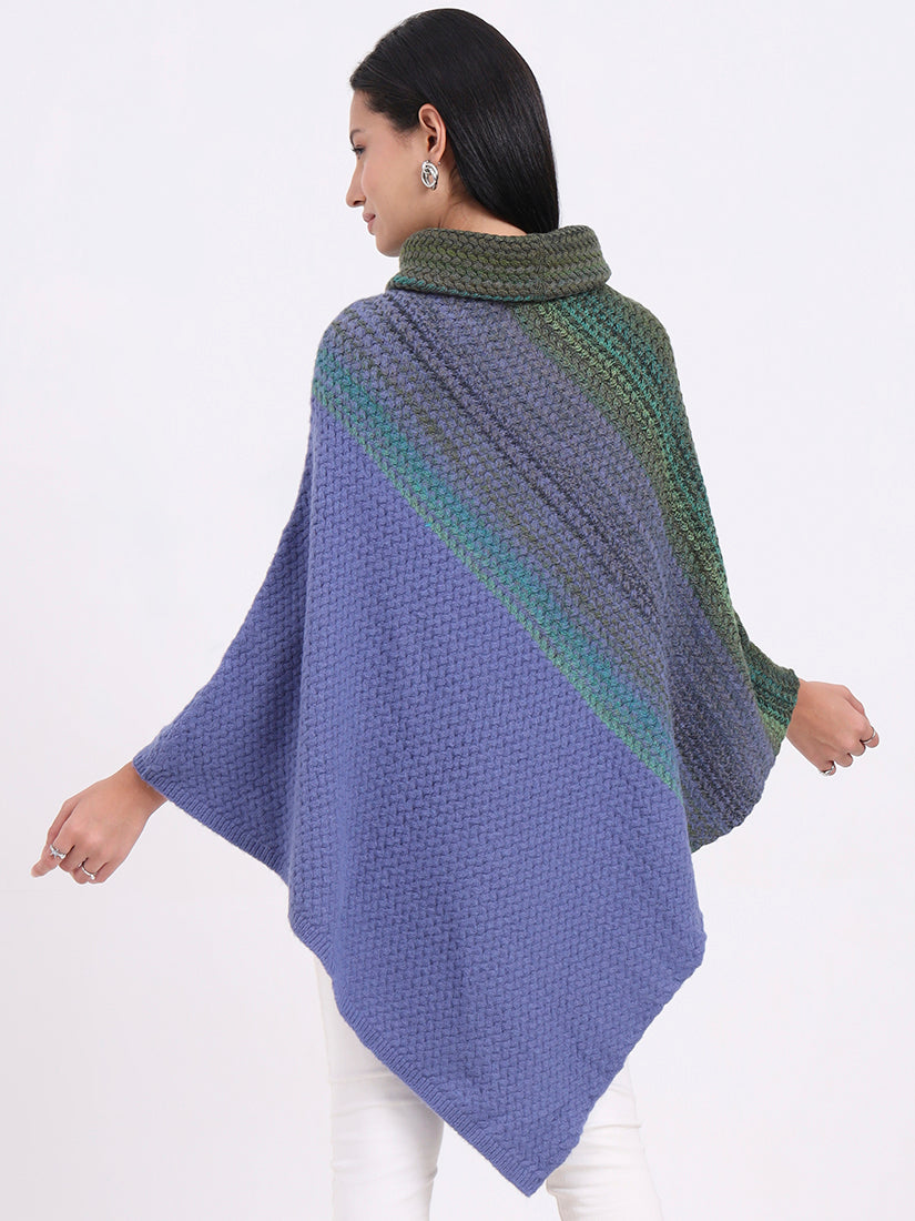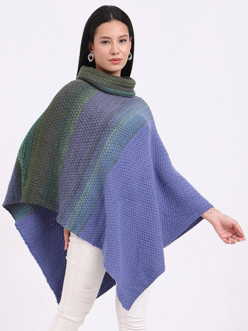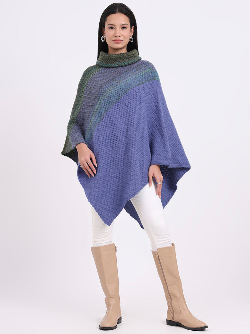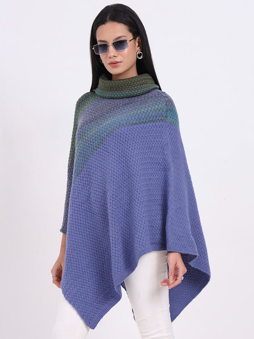 The Ocean Drift Poncho blends blue and green tones in a soft interplay of shades. Inspired by shifting tides, it offers a sophisticated balance of vibrancy and calm refinement.