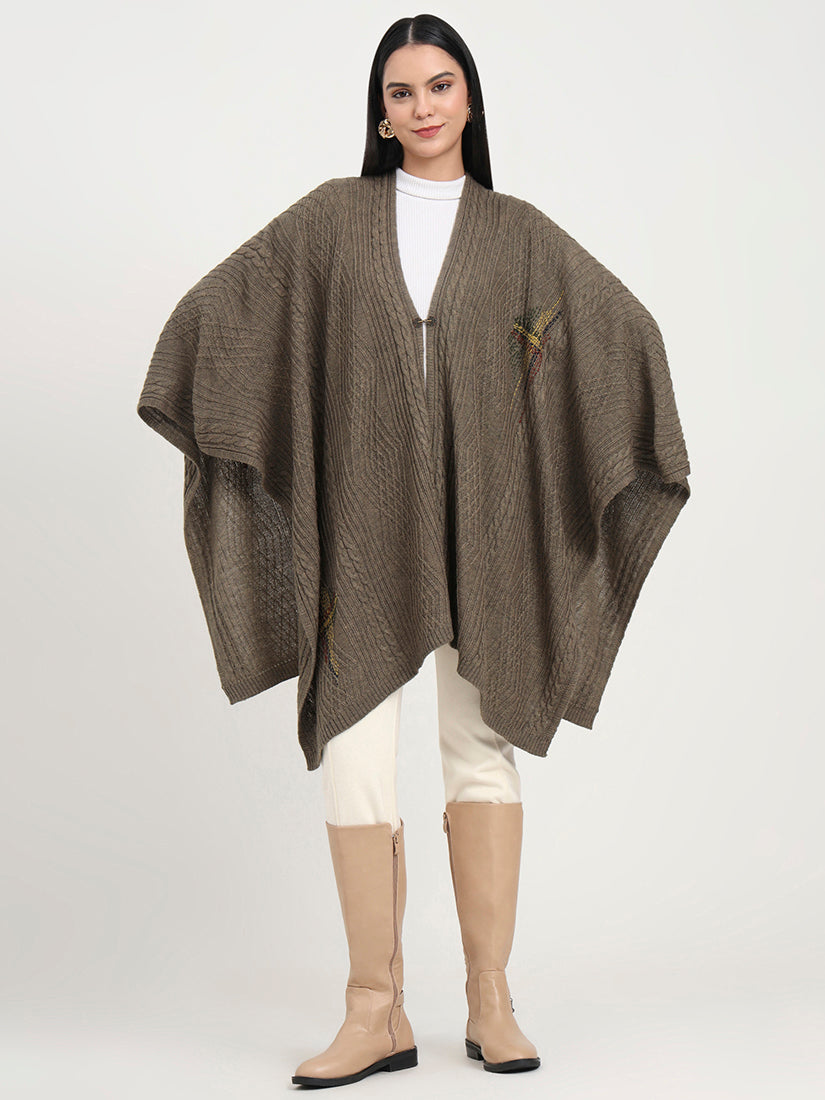 The Olive Glen Cape blends earthy green tones with a soft wool-blend texture. A refined layer that balances rustic charm with contemporary luxury.