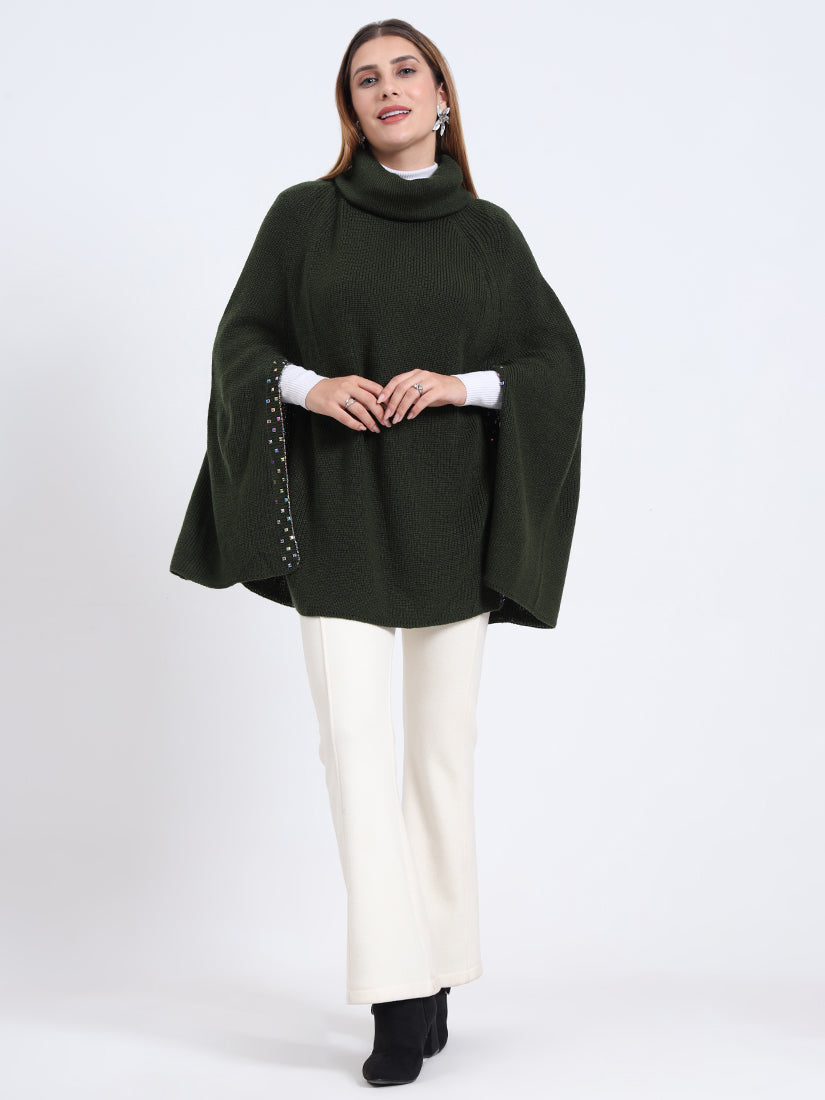 Grounded in earthy elegance, the Olive Terra Poncho is woven from soft wool blends in a deep olive hue. A sophisticated layer that bridges natural warmth with modern refinement.