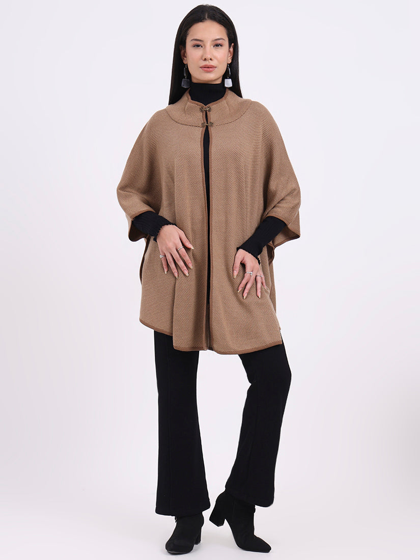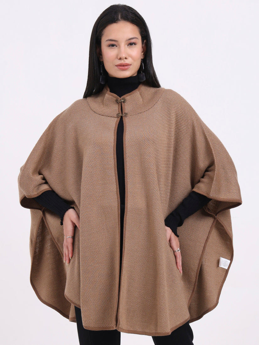 Neutral yet luxurious, the Pebble Weave Cape in beige wool blends softness and structure. A timeless wardrobe essential that brings warmth and sophistication to transitional dressing.