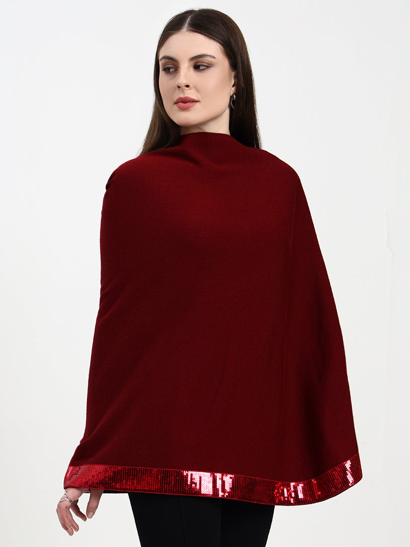 An opulent wine hue inspired by aged cellars and soft candlelit reflections. The sequined edge glimmers subtly against its rich tone, exuding quiet confidence and warmth—ideal for winter soirées or fireside gatherings.