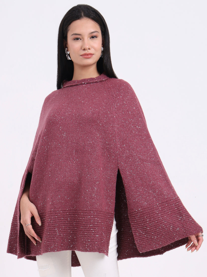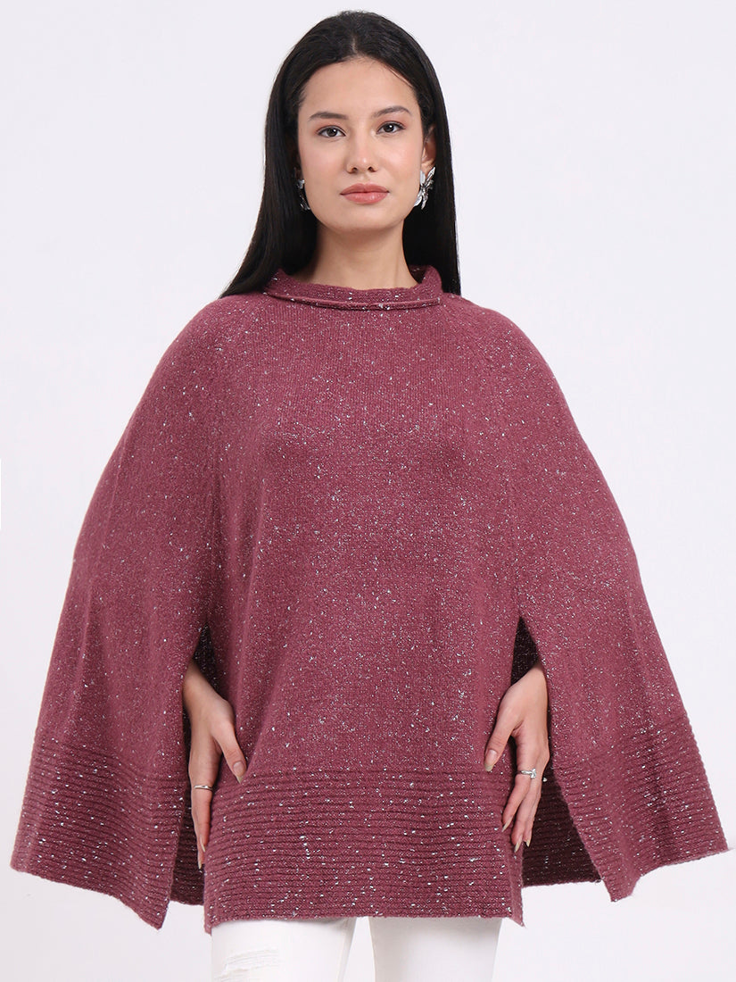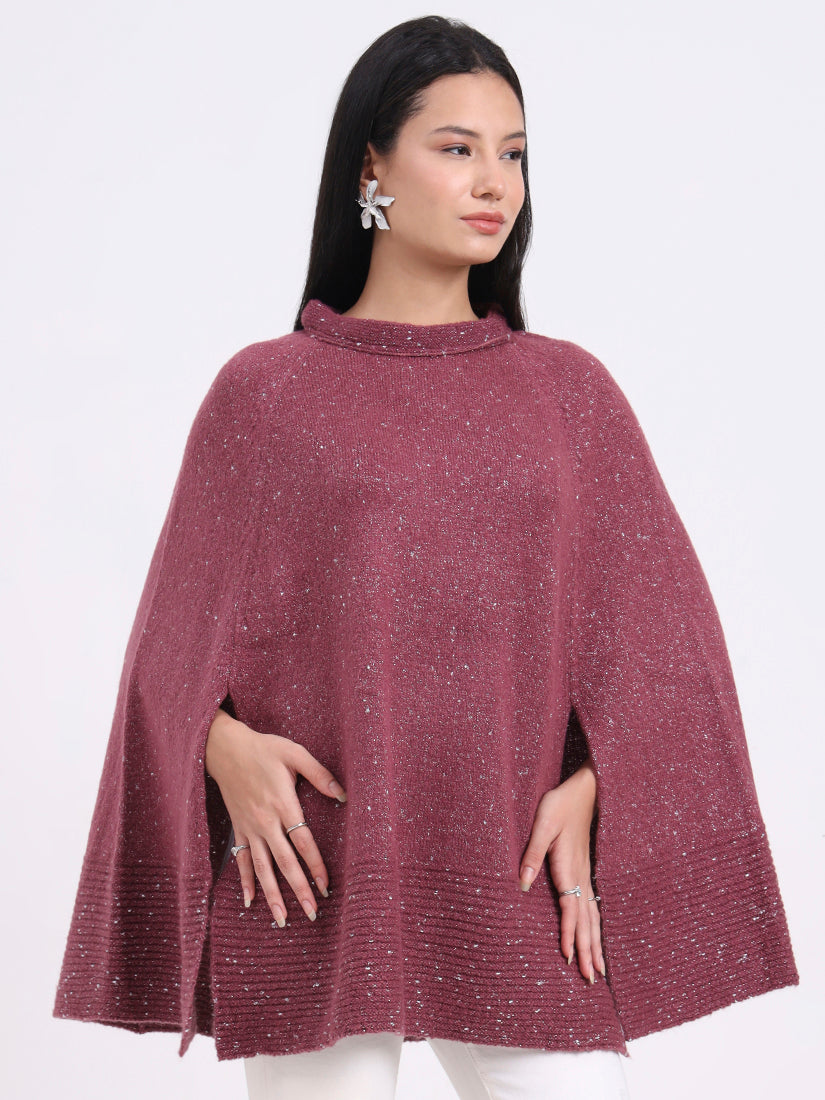 Feminine and refined, the Rosé Gleam Poncho offers a gentle pink hue with a touch of sparkle, balancing warmth and elegance with modern allure.