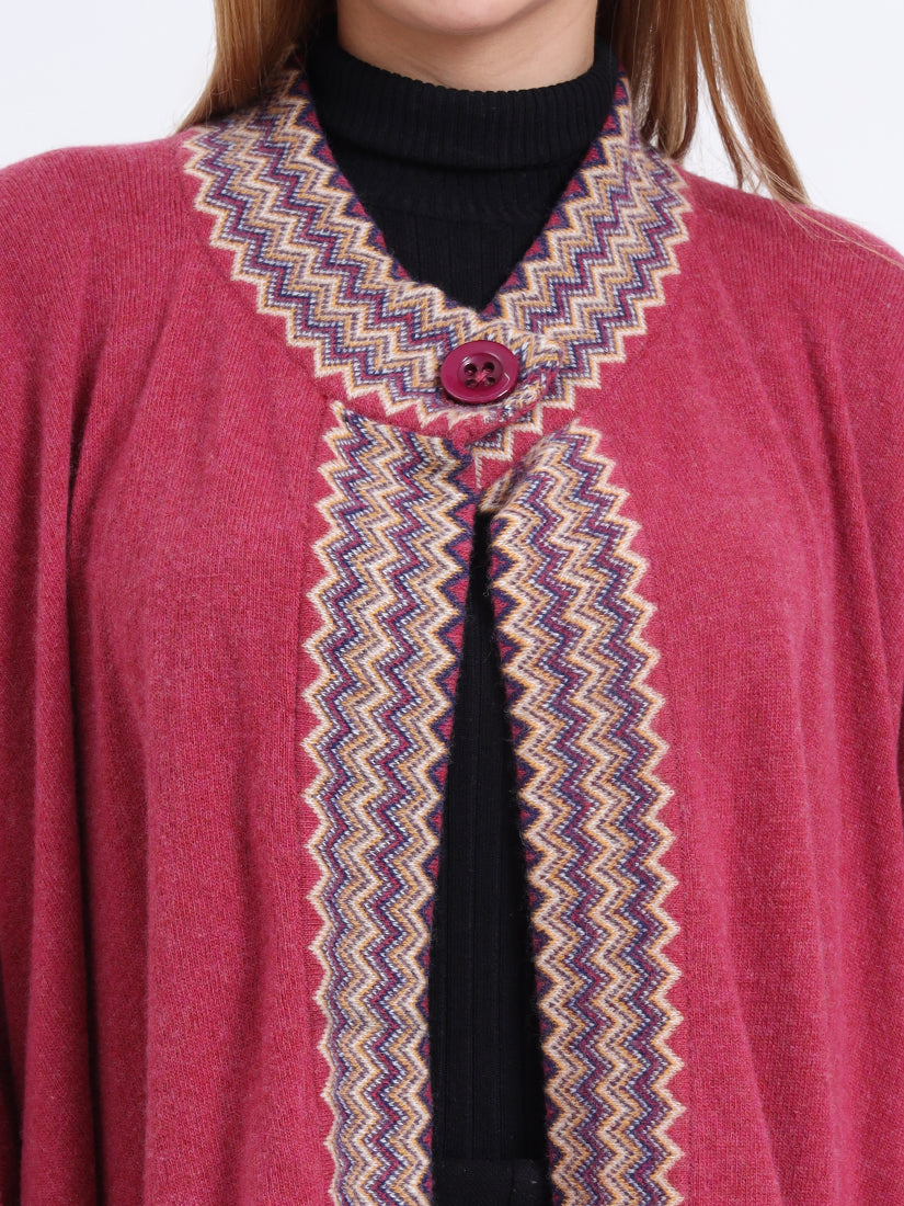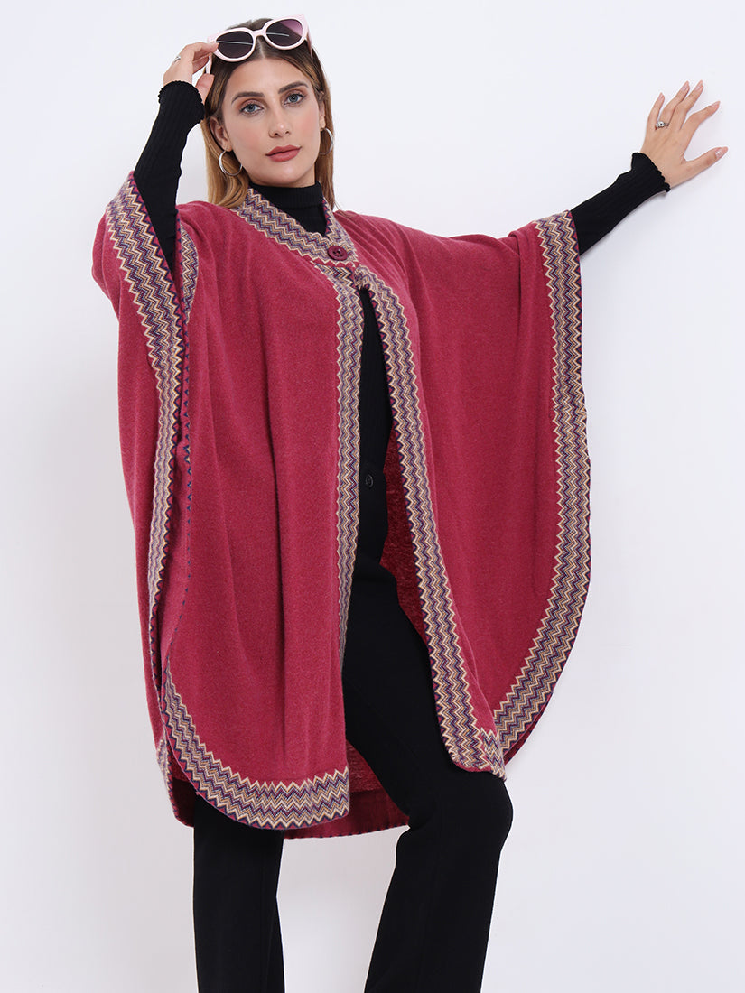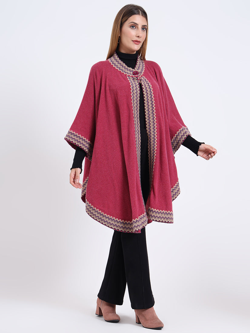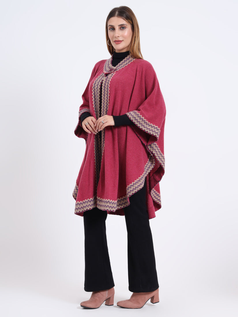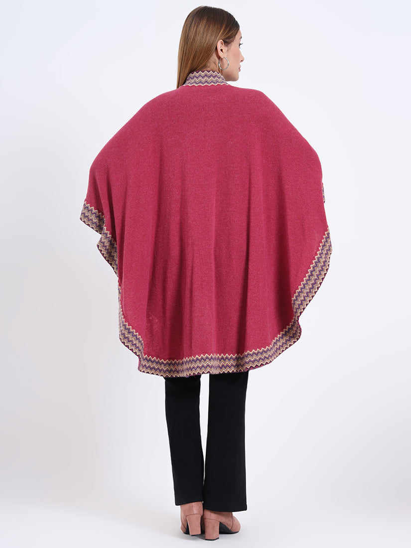 Feminine yet elegant, the Rosewood Border Cape in soft pink lambswool carries intricate border patterns. Its gentle drape and warmth add a touch of refinement to every occasion.