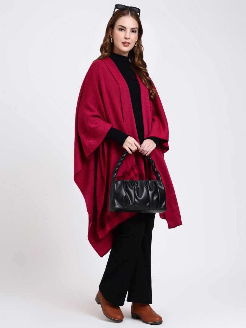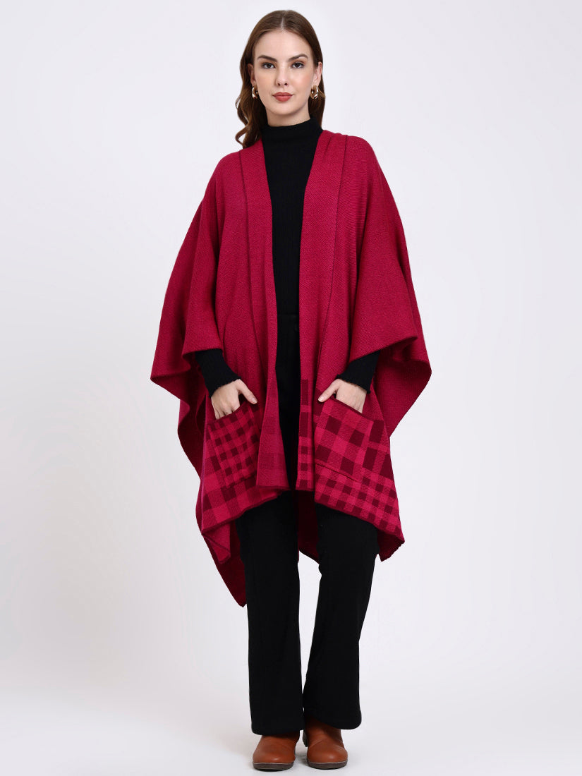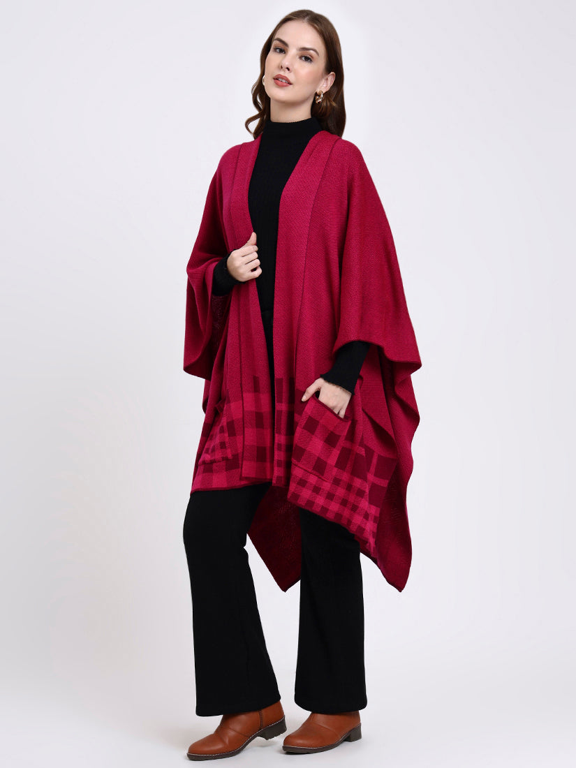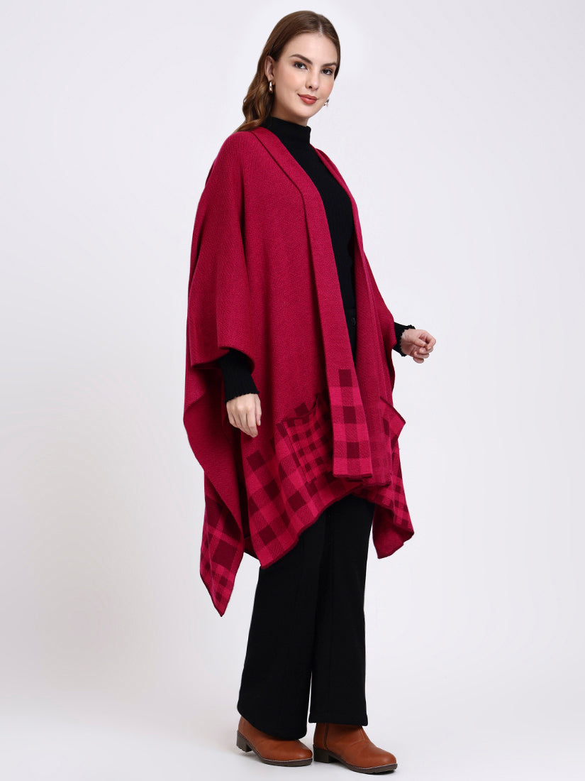 The Rosewood Plaid Cape is an elevated expression of modern femininity. The harmonious blend of muted pinks with onion undertones and checked borders offers a soft yet distinctive statement, making it ideal for refined layering through every season.