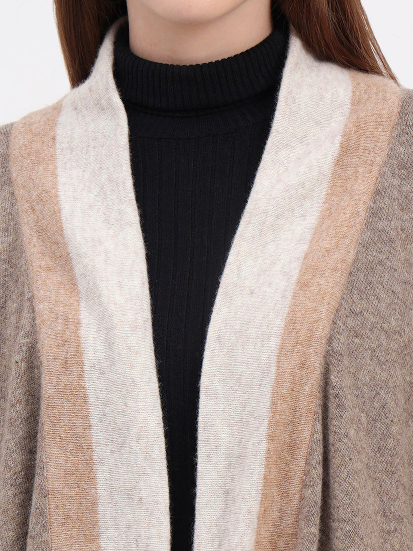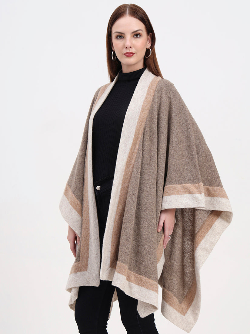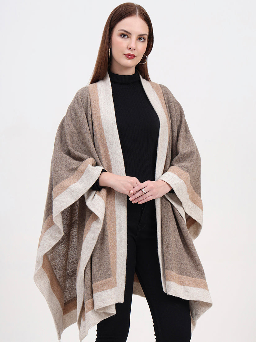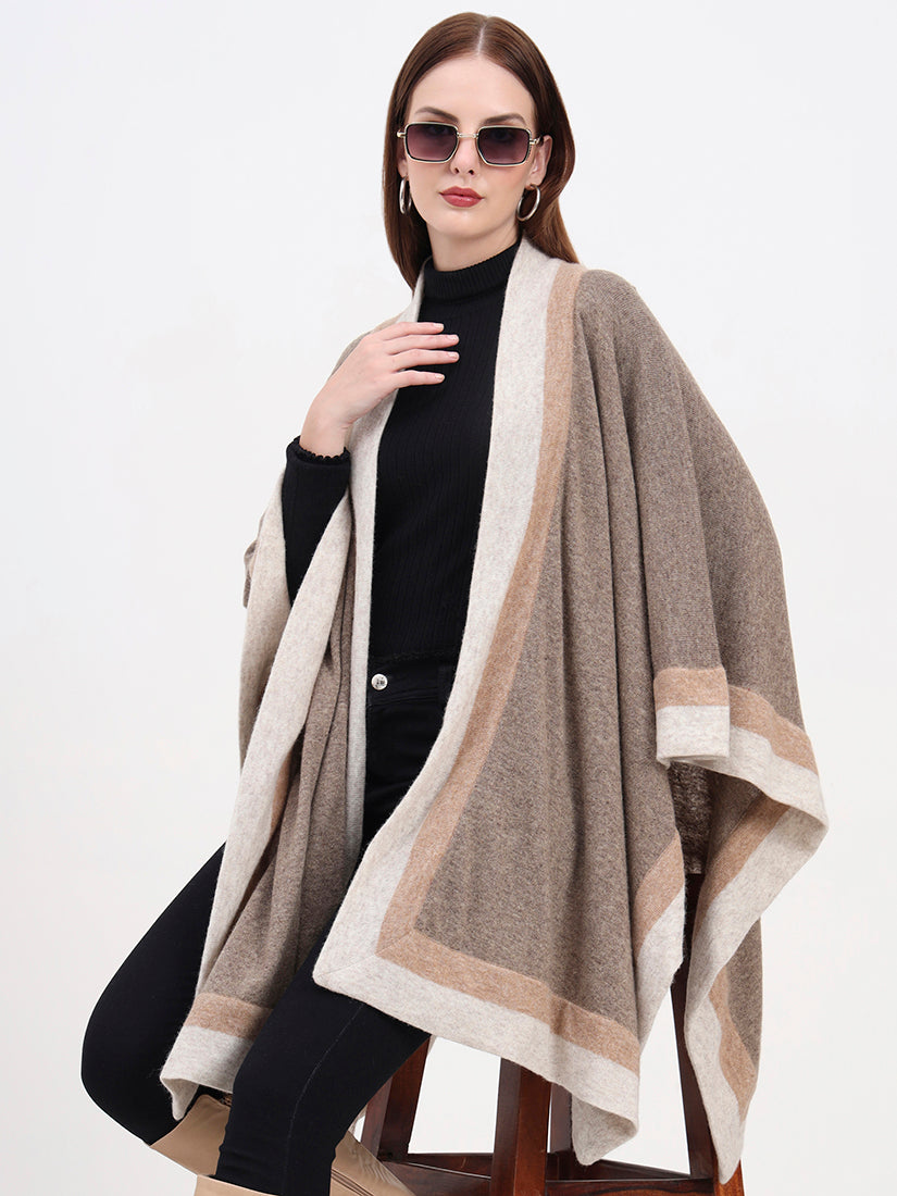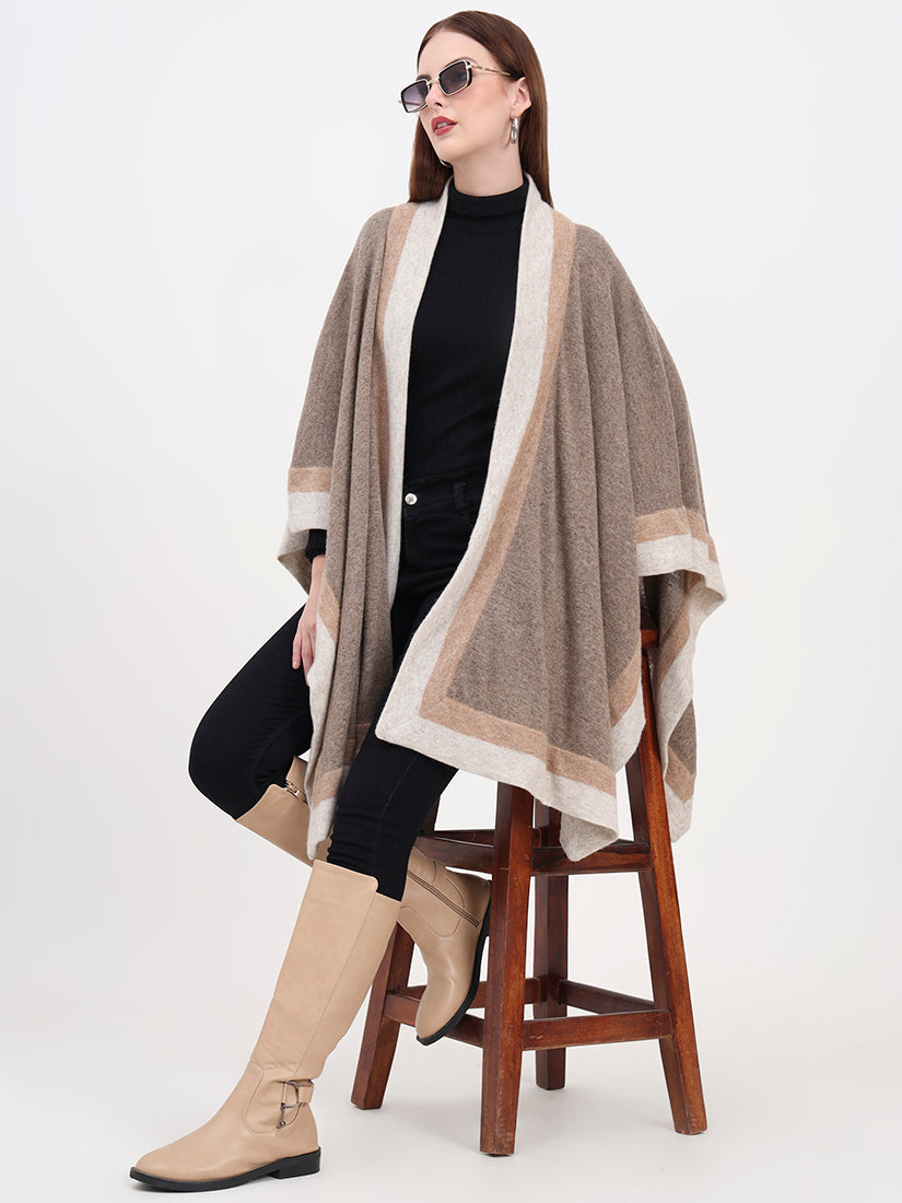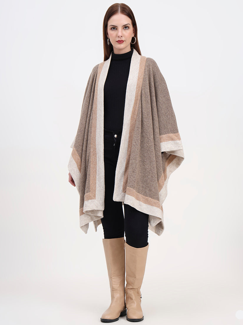 The Sand Drape Cape, in beige lambswool, is a study in effortless elegance. Soft, breathable, and refined, it offers natural versatility that transitions seamlessly between seasons and settings.