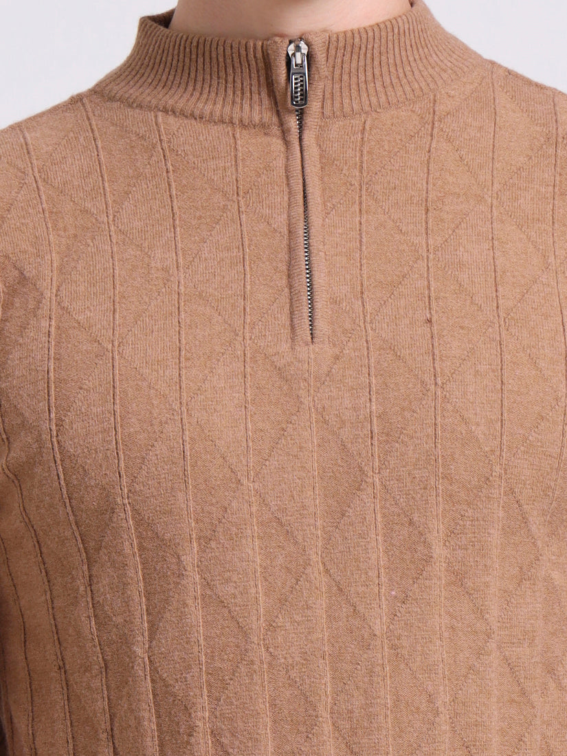 A soft, neutral beige recalling windswept dunes at golden hour. The cable detailing creates subtle texture against the understated palette, while the half-zip front allows easy layering — a warm essential that moves gracefully from leisure to business casual.