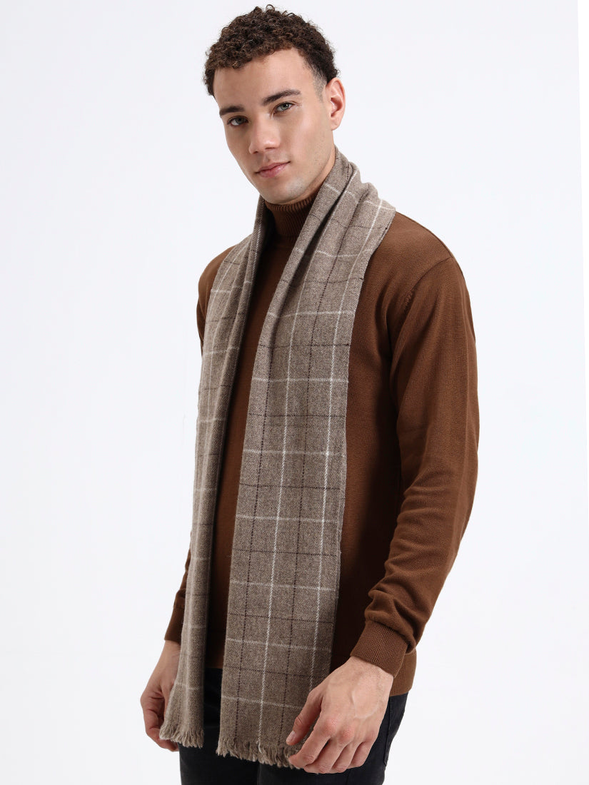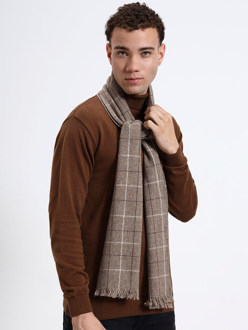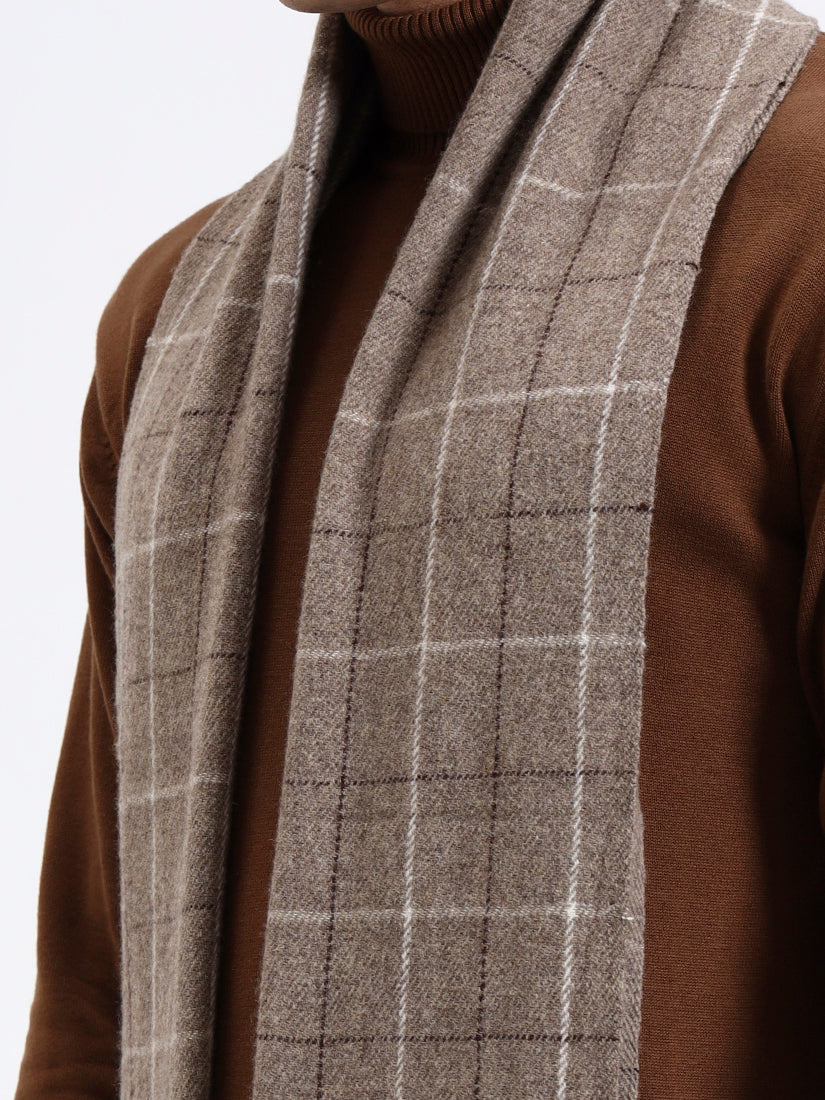 Crafted from pure Lambswool, this brown grid scarf offers a soft, natural warmth with an effortlessly refined appeal. The subtle windowpane pattern brings a touch of structure, while its neutral tone complements both casual and tailored winter looks.