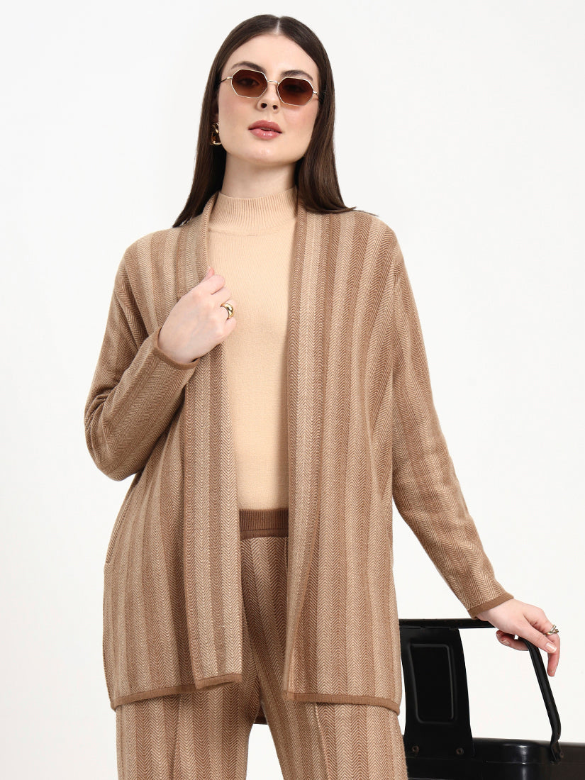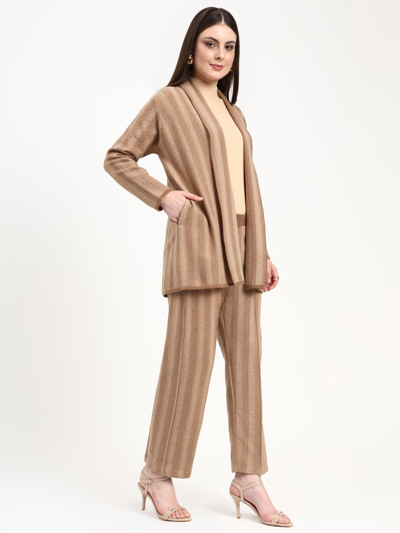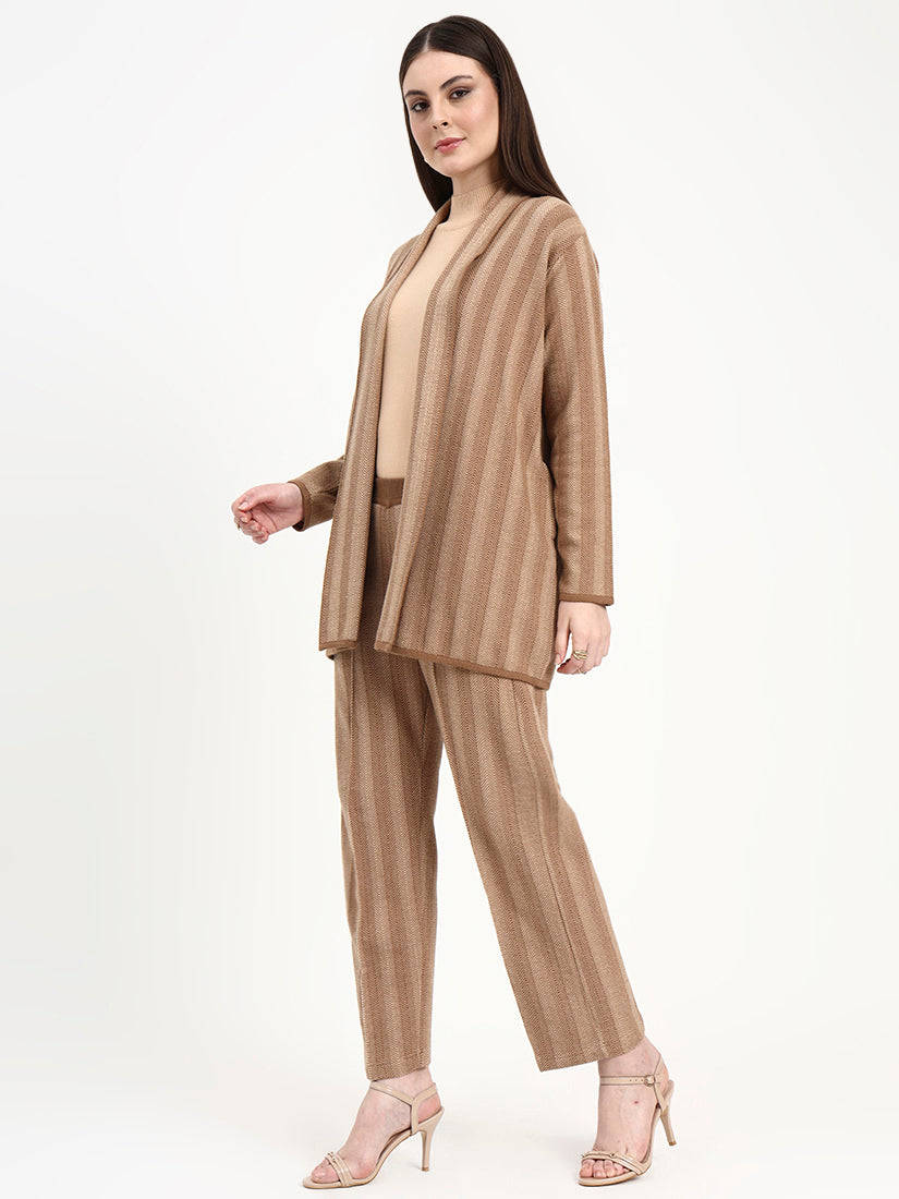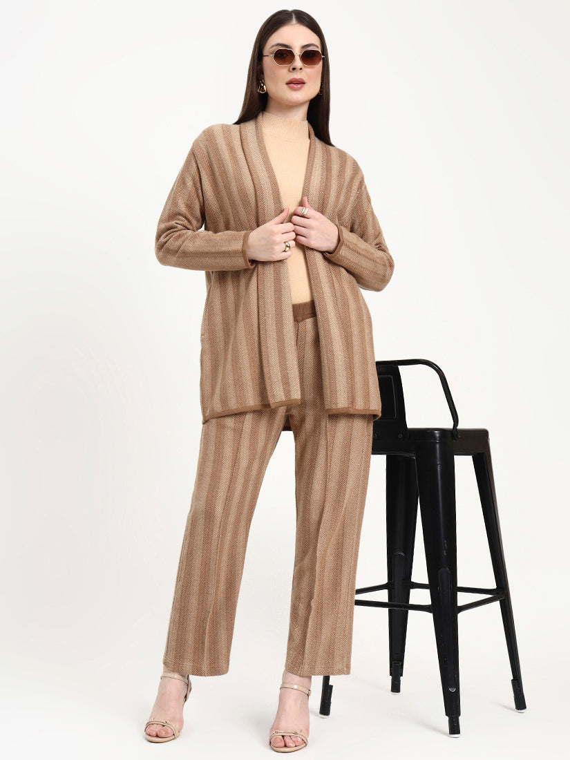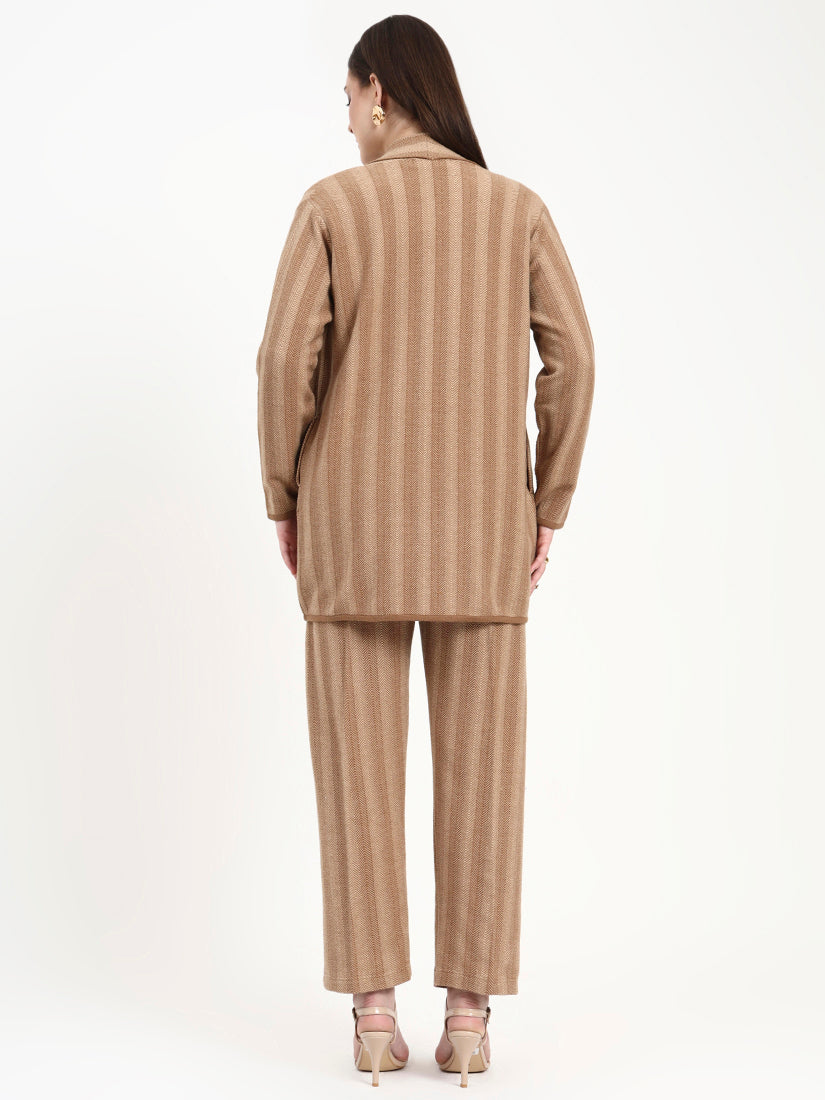 Softly structured and effortlessly refined, Sandmere Co-ord Set brings warmth and elegance together. Fine vertical lines create a graceful elongation, while the neutral tone reflects modern ease and timeless charm.