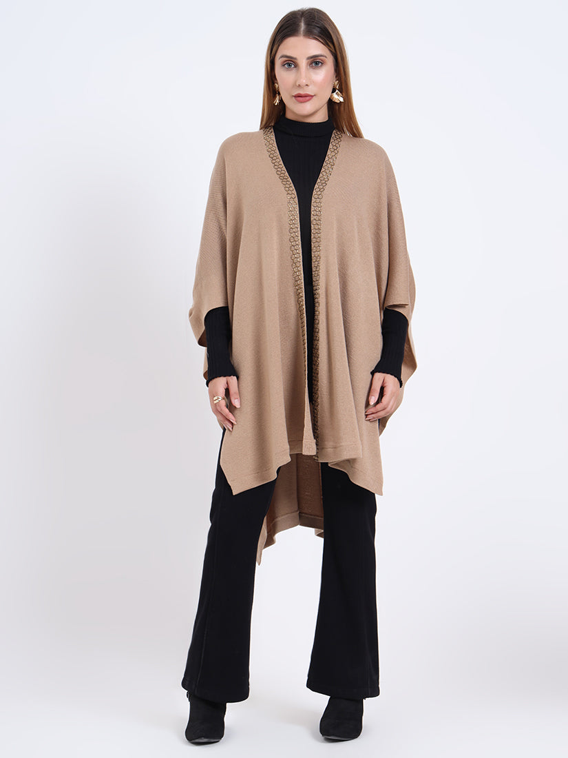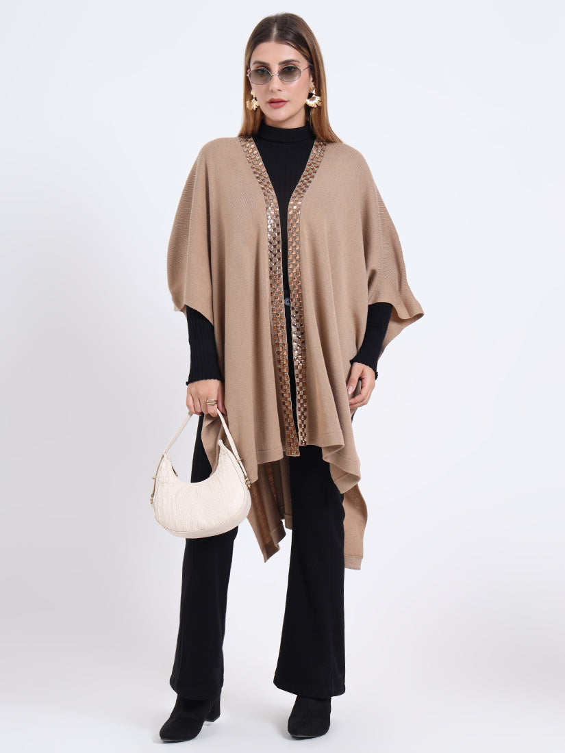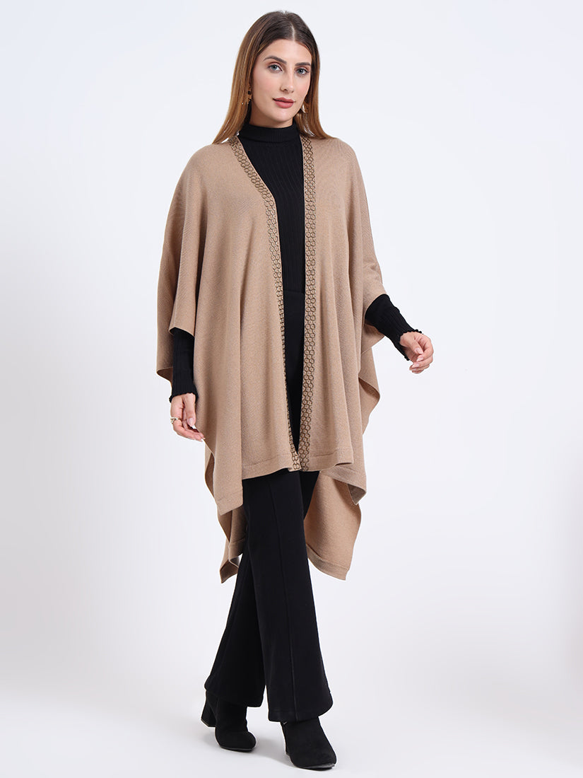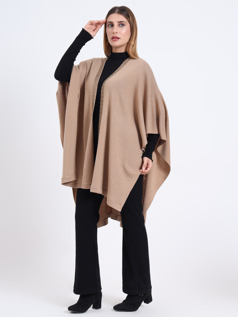 Inspired by natural stone hues, the Sandstone Drape Cape is woven in fine wool blends. Minimalist and versatile, it brings grounded elegance to any wardrobe.