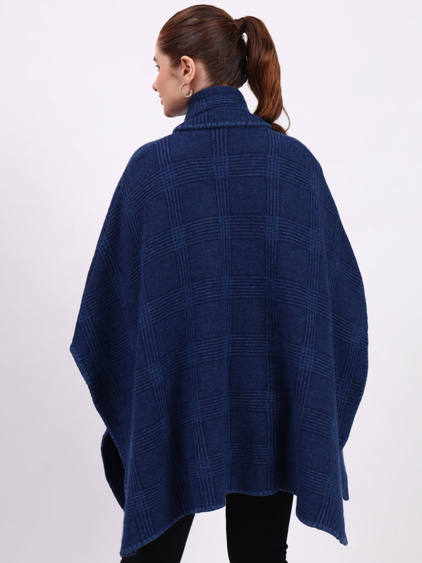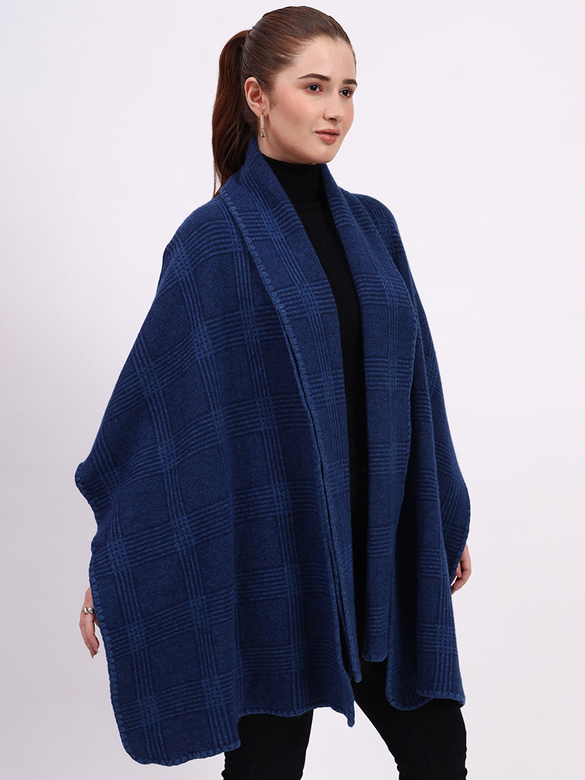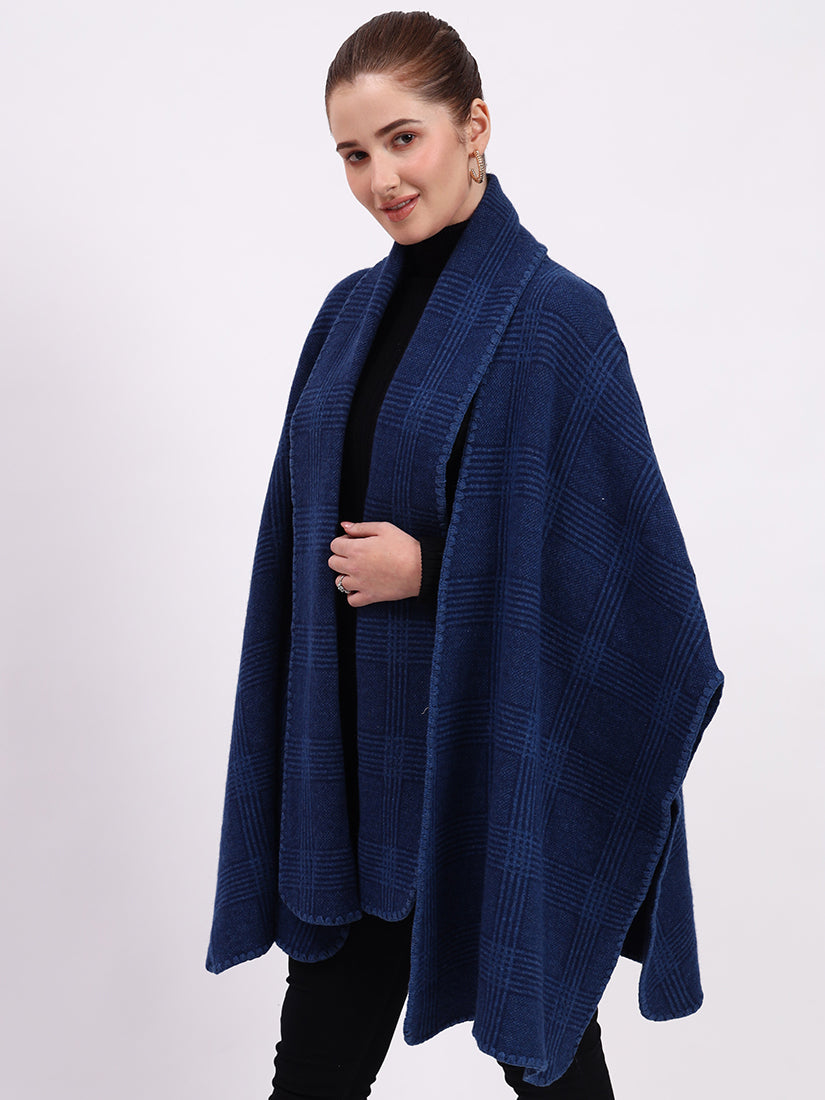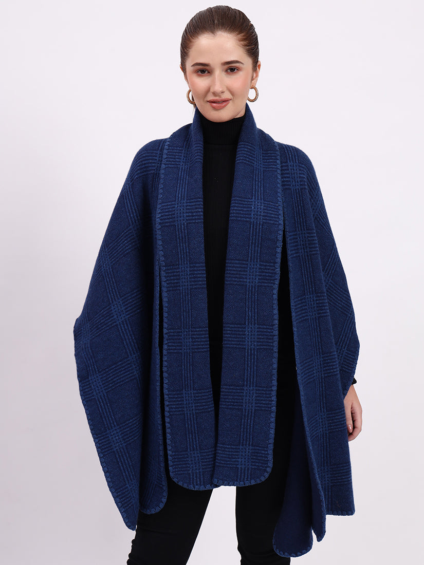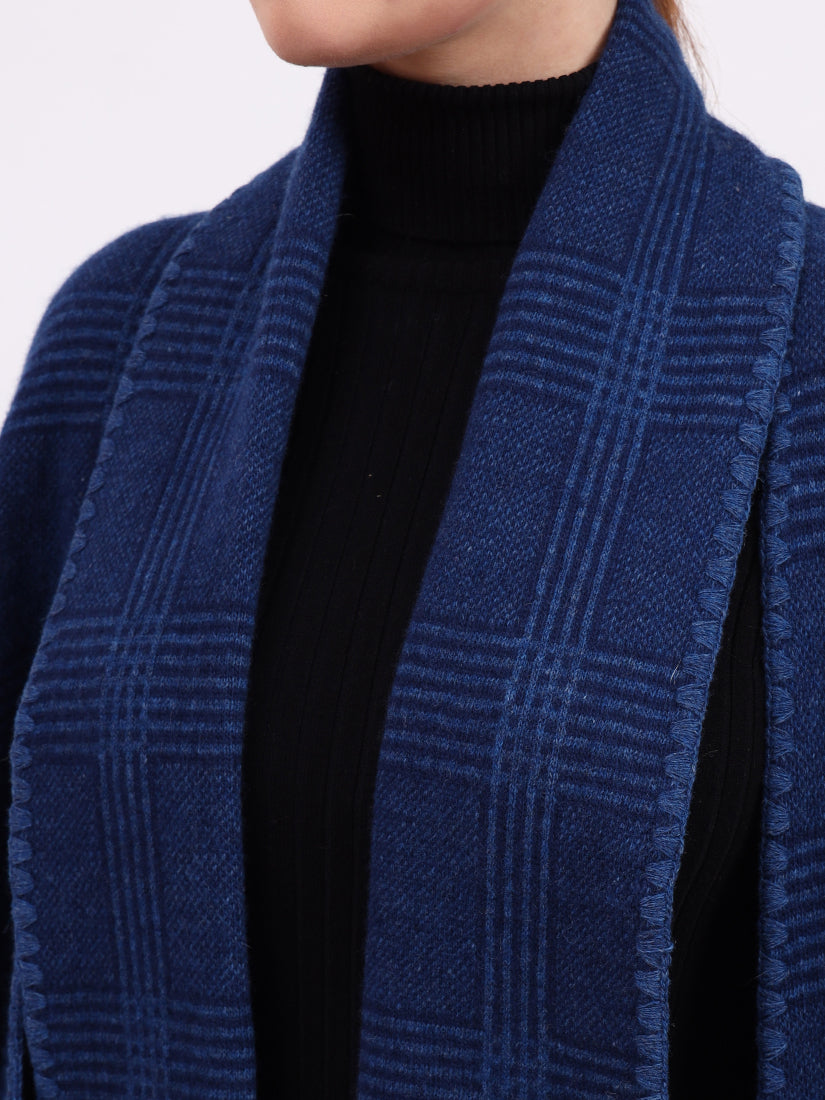 Crafted in pure lambswool, the Sapphire Haven Cape in deep blue pairs its flowing drape with an attached muffler for added elegance. A versatile layer that blends warmth, sophistication, and timeless refinement.