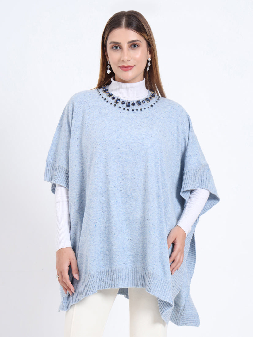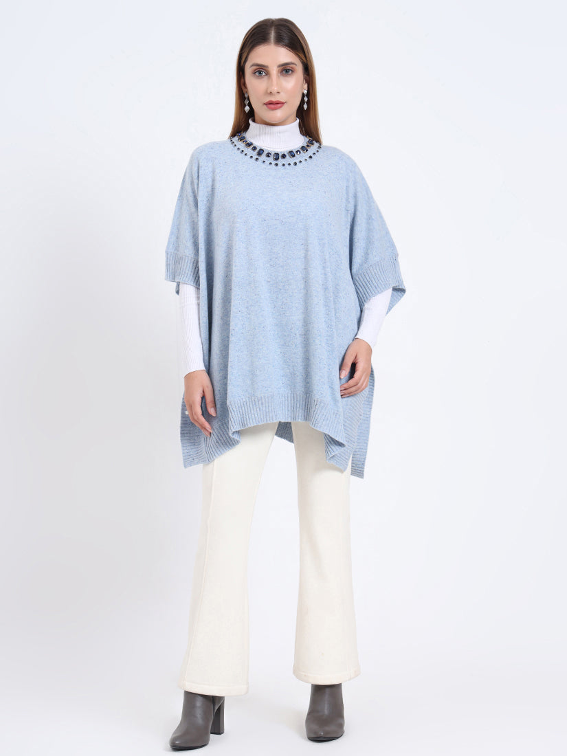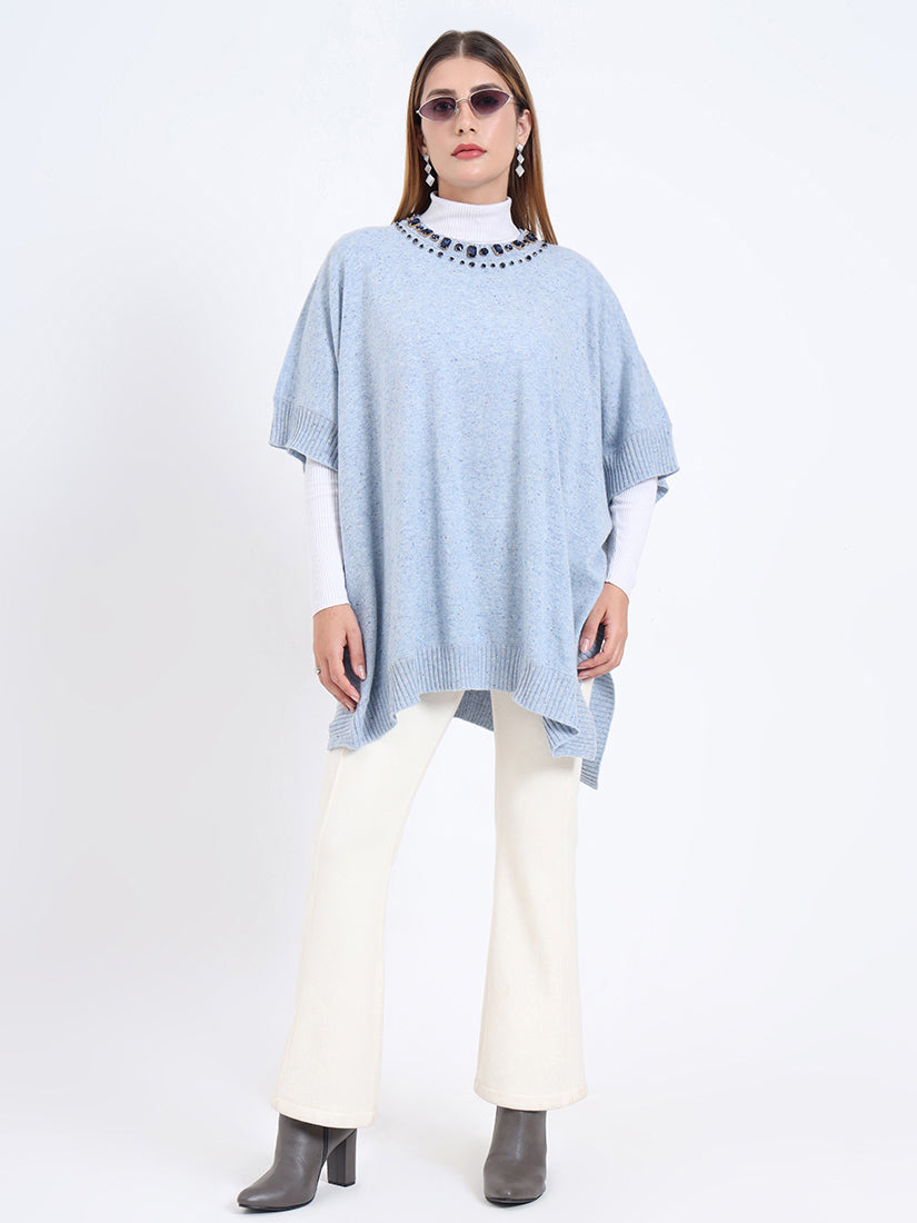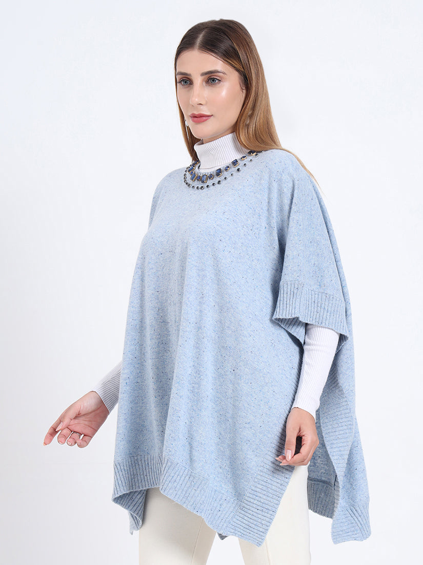 Light and serene, the Sky Aura Poncho embodies airy sophistication. Woven in plush wool blends, it reflects effortless elegance with a modern touch.