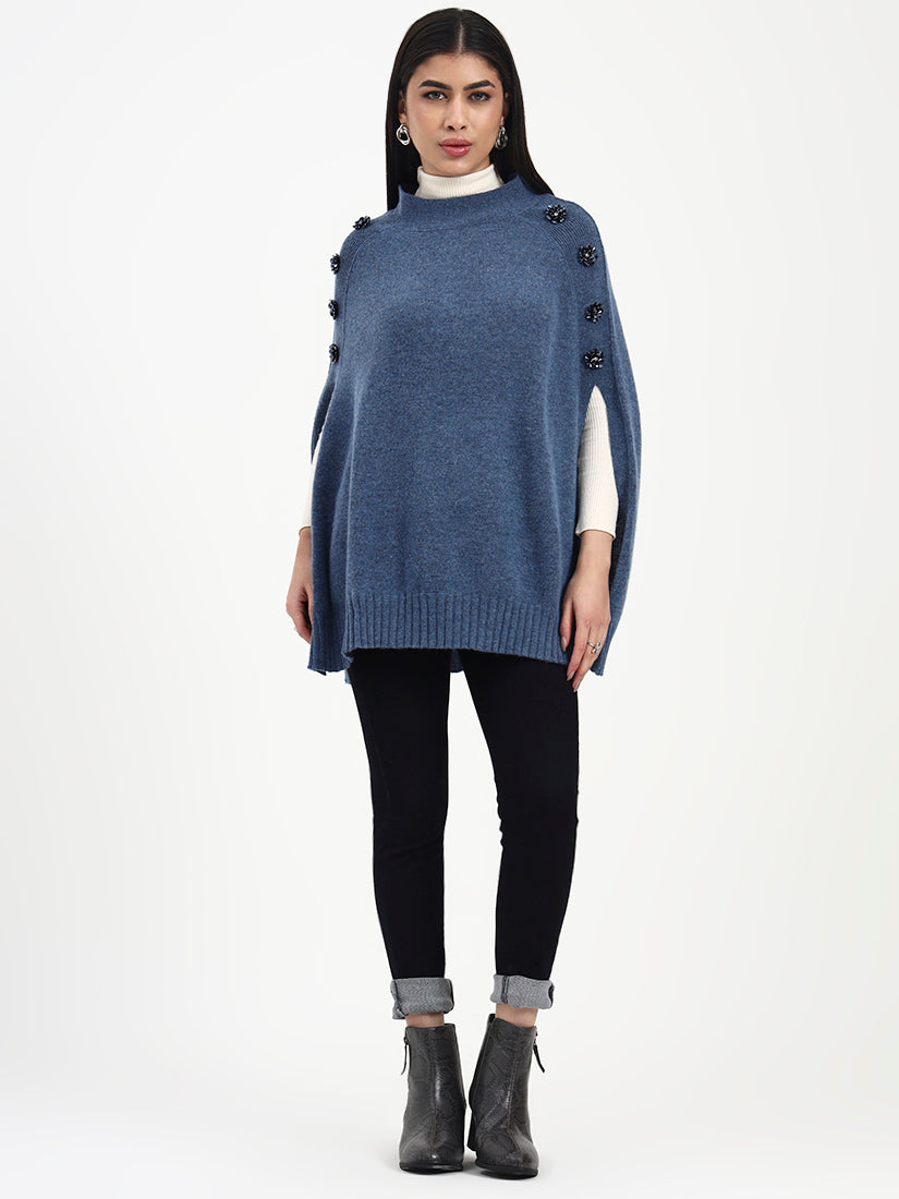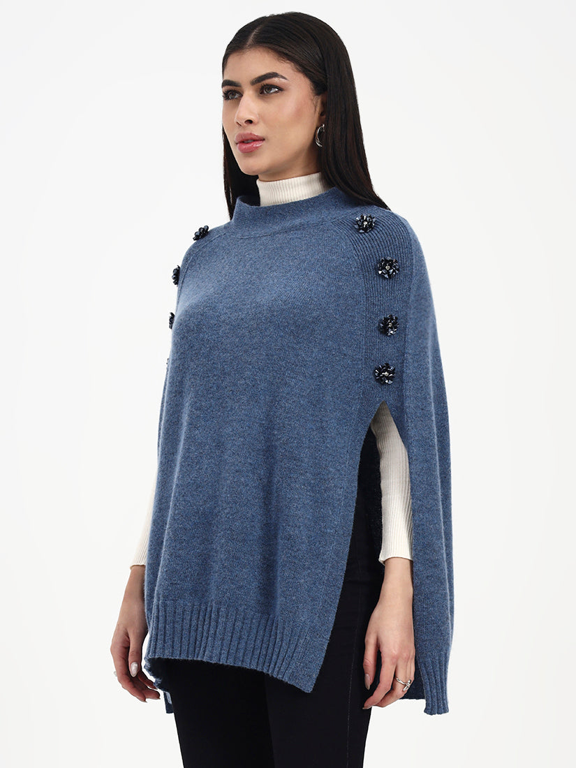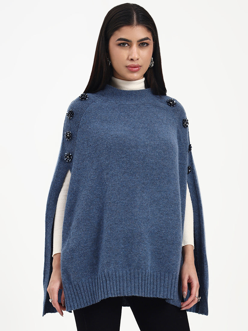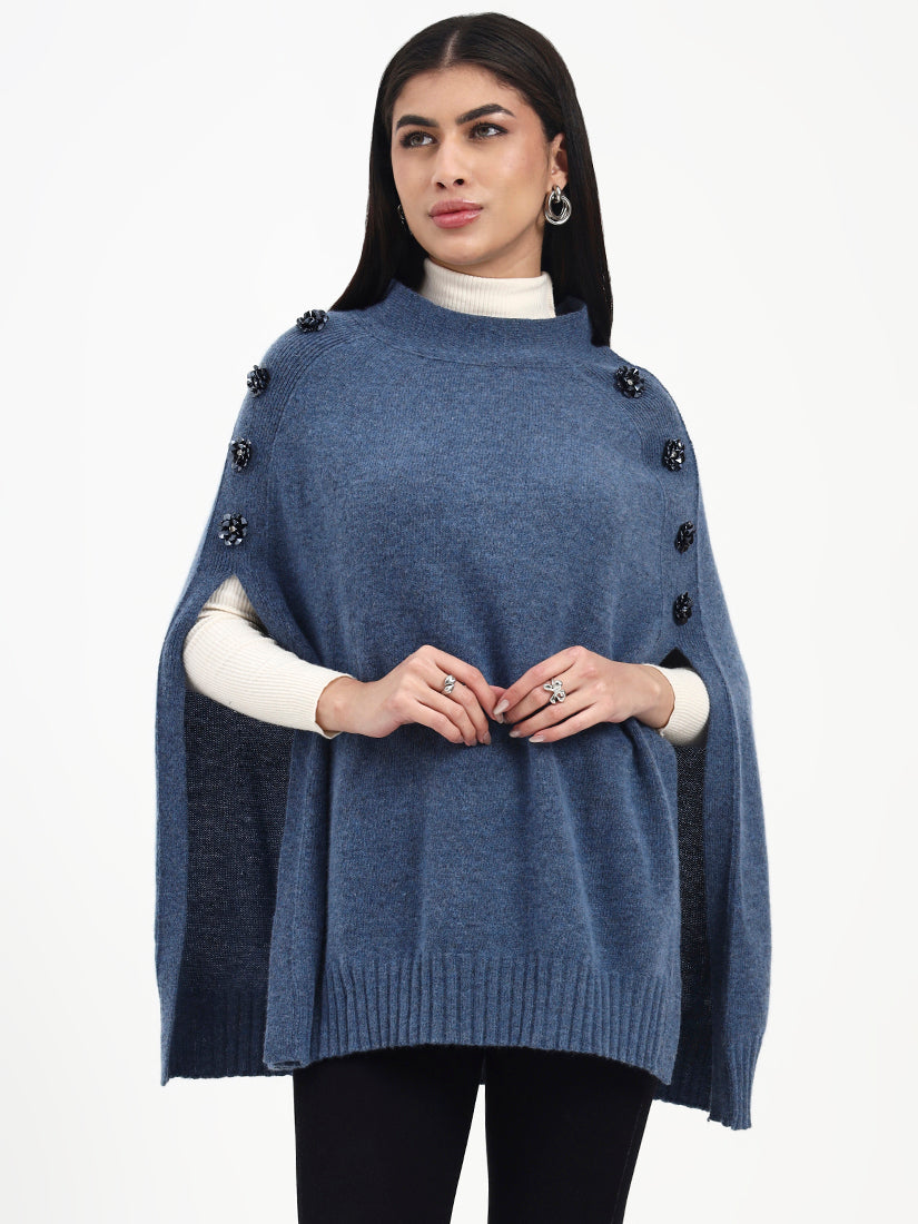 A muted slate-blue base paired with delicate crystal accents creates a calm yet elevated look. The soft shimmer enhances the texture while maintaining an understated, sophisticated feel. The result is a modern essential that feels refined, balanced, and quietly expressive.