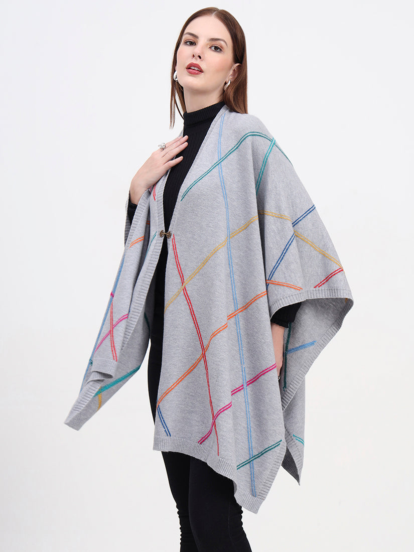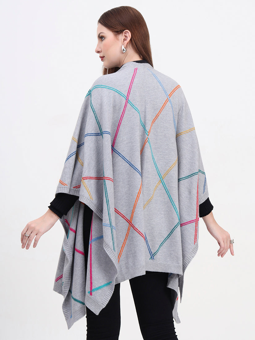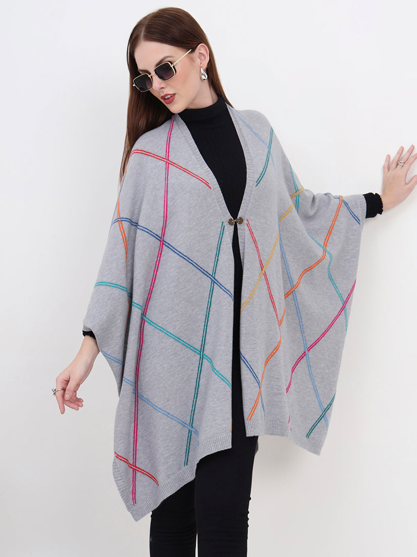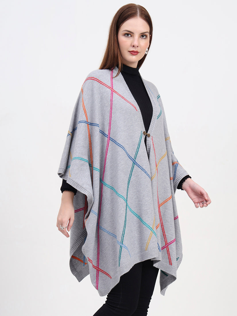 The Slate Grid Cape reflects understated refinement in muted grey. Its clean lines and flowing silhouette make it a versatile choice for both day and evening wear.