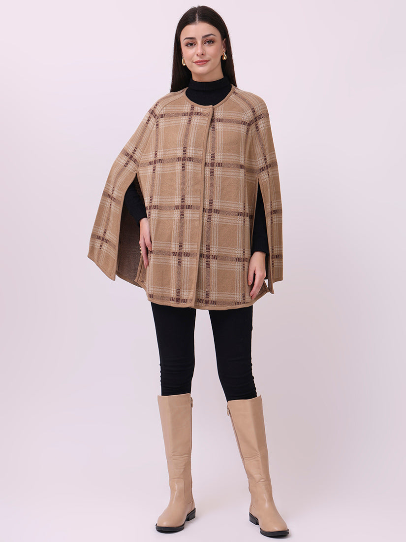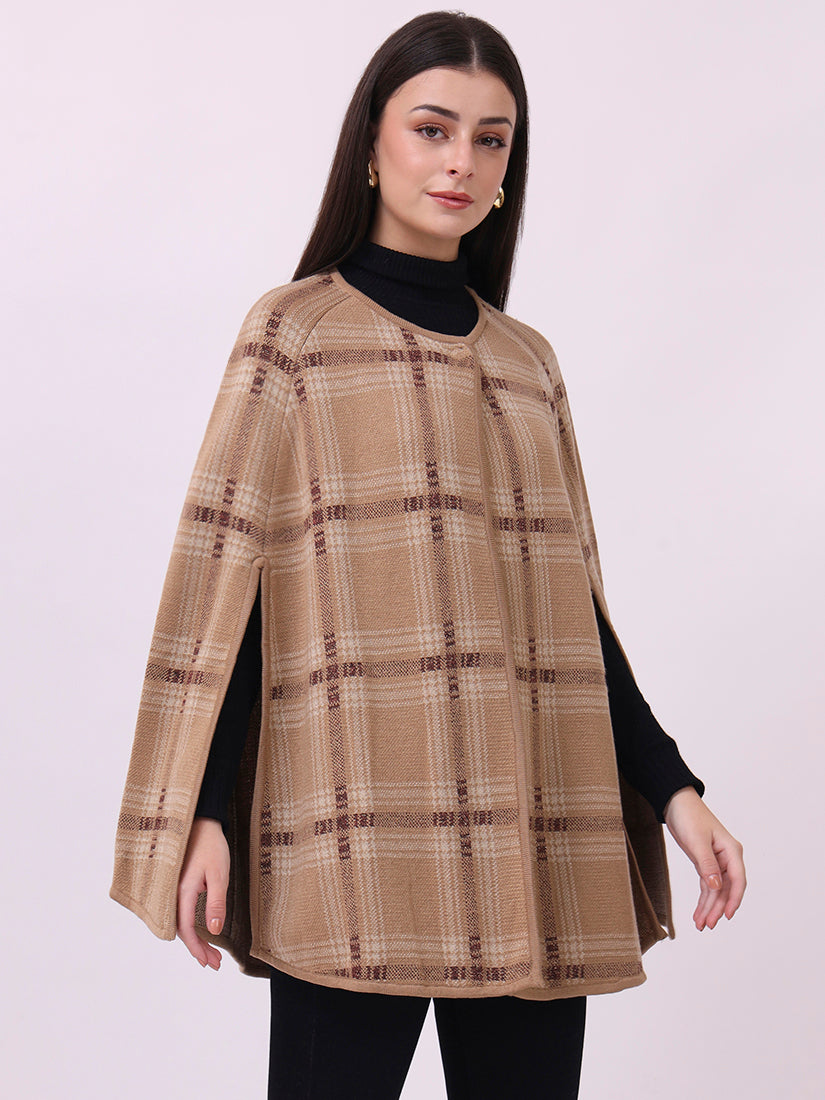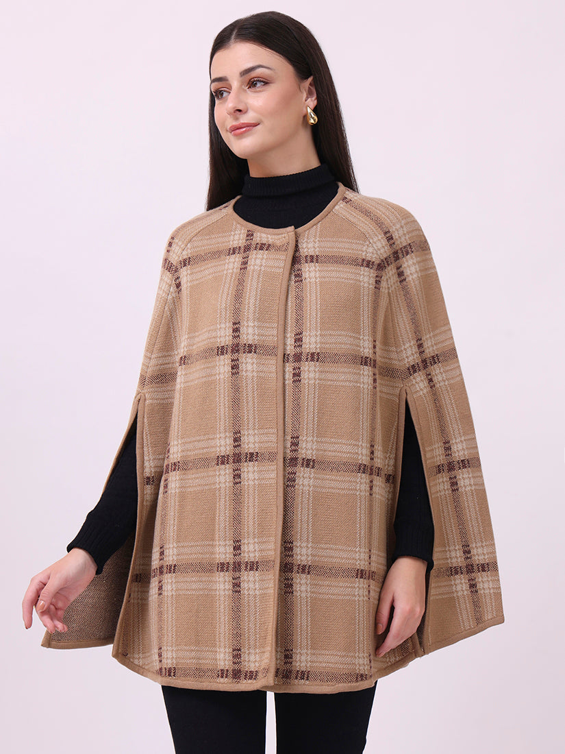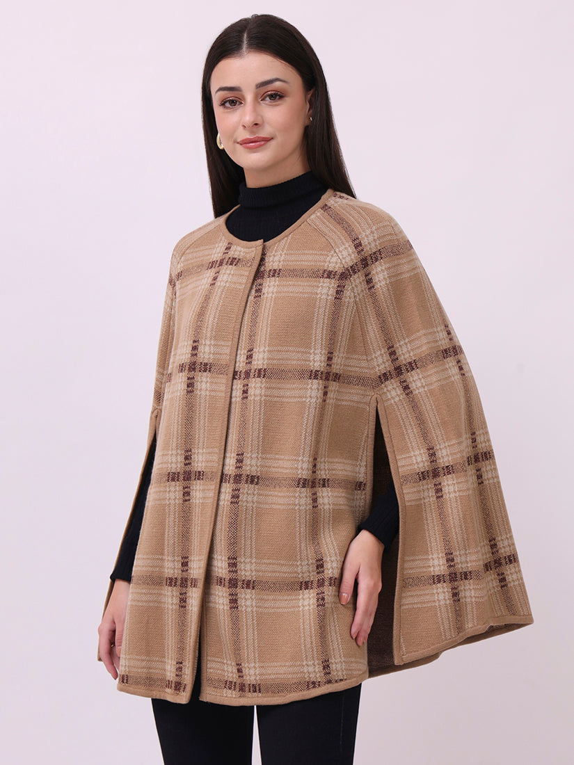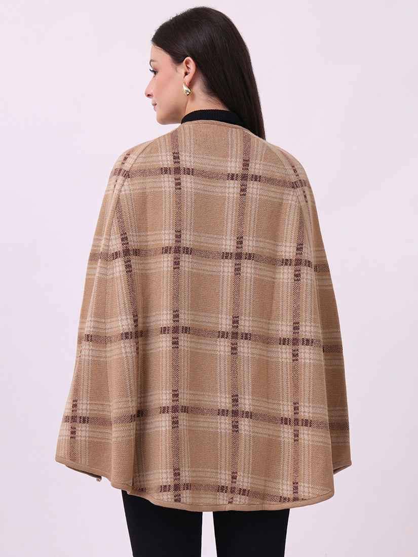 Soft beige checks lend a contemporary polish to the classic cloak silhouette, perfect for understated layering.