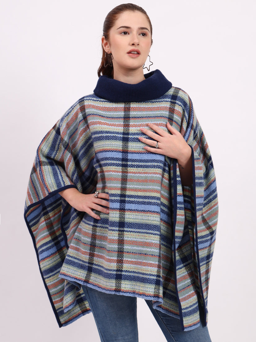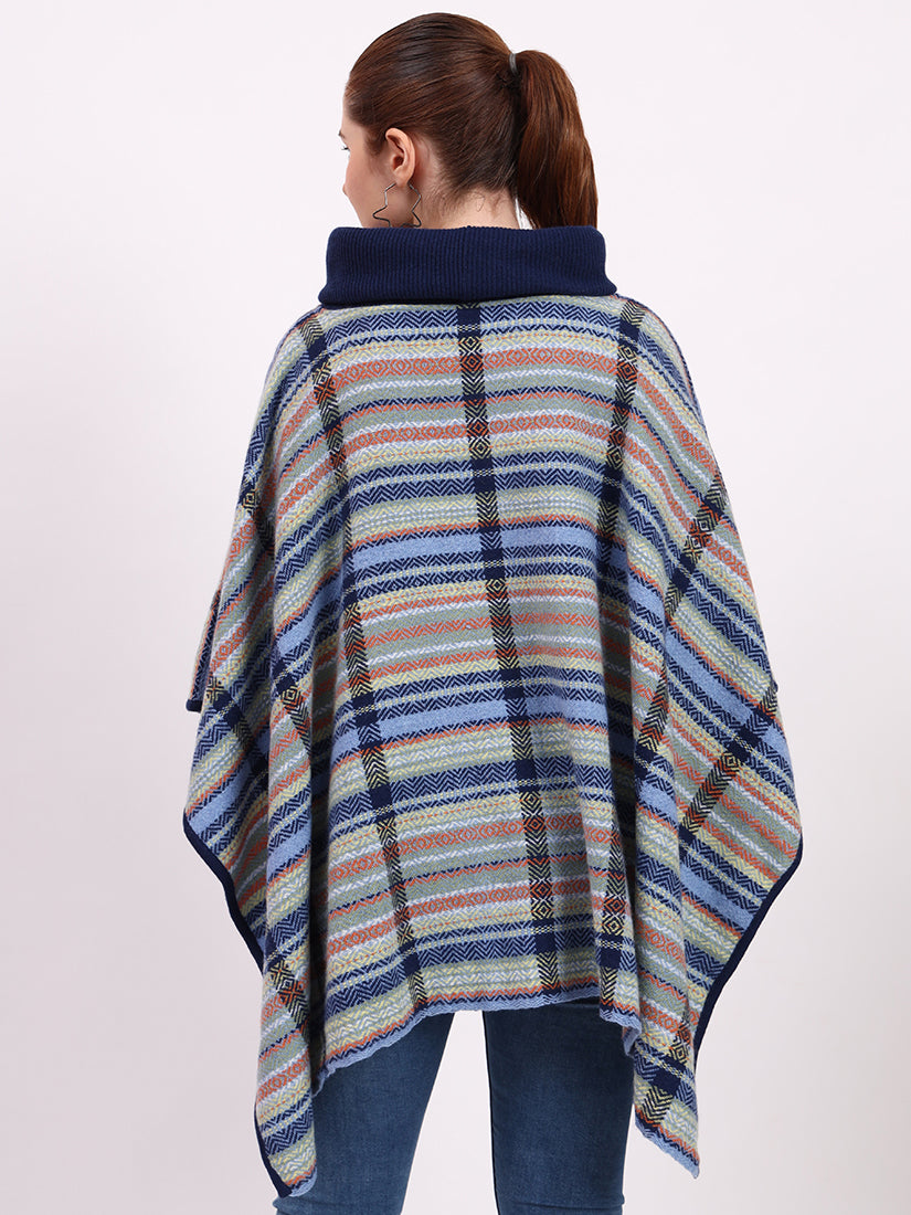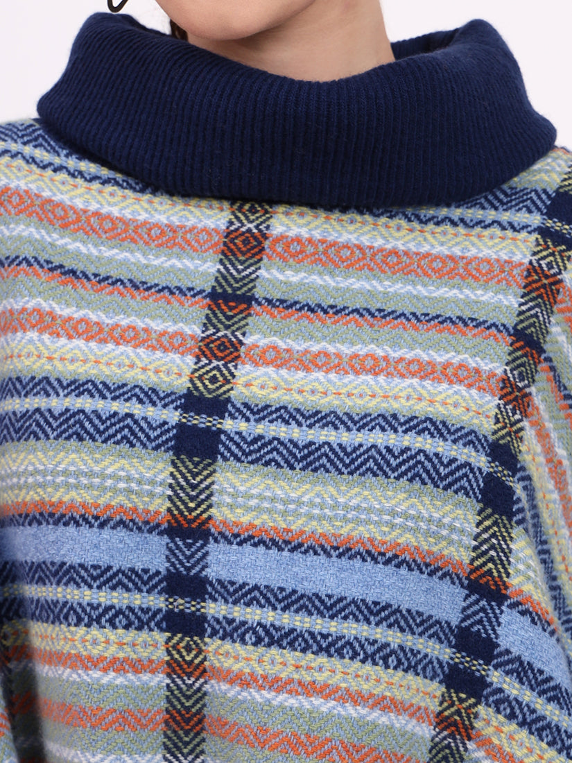 Crafted in handwoven lambswool, the Strathmore Indigo pairs a structured high neck with intricate stripe patterns, delivering understated elegance. Its fluid silhouette and artisanal weave bring warmth with a distinguished modern edge.