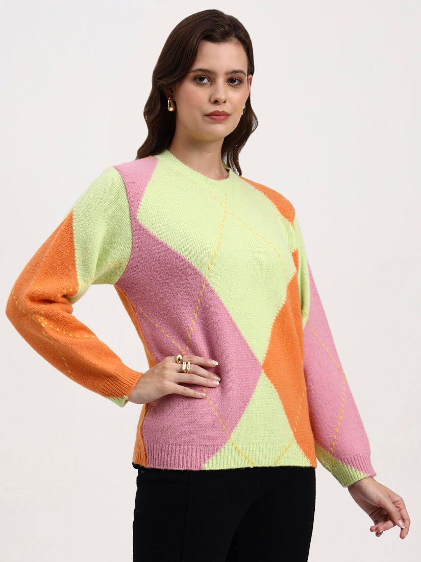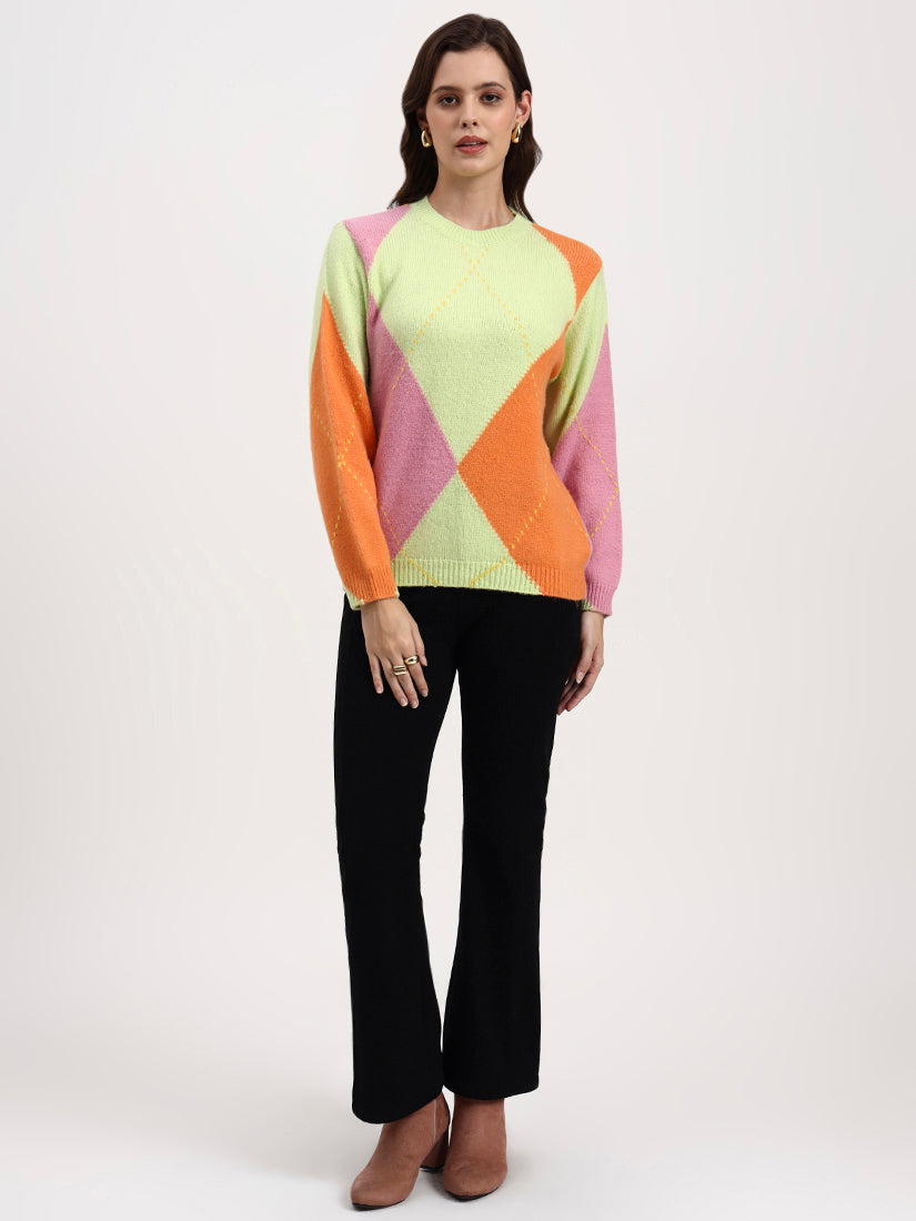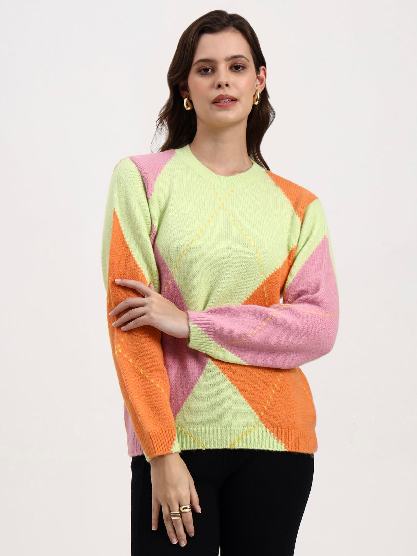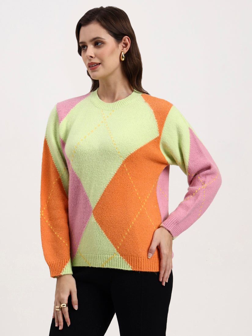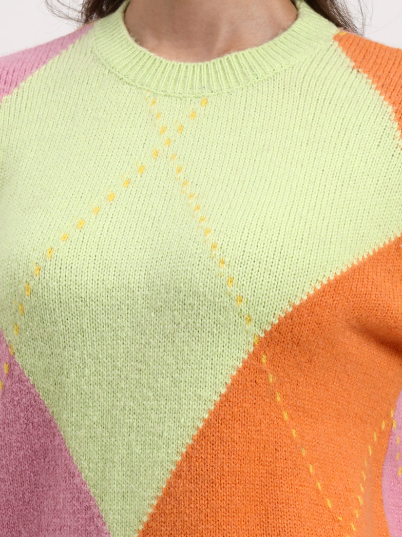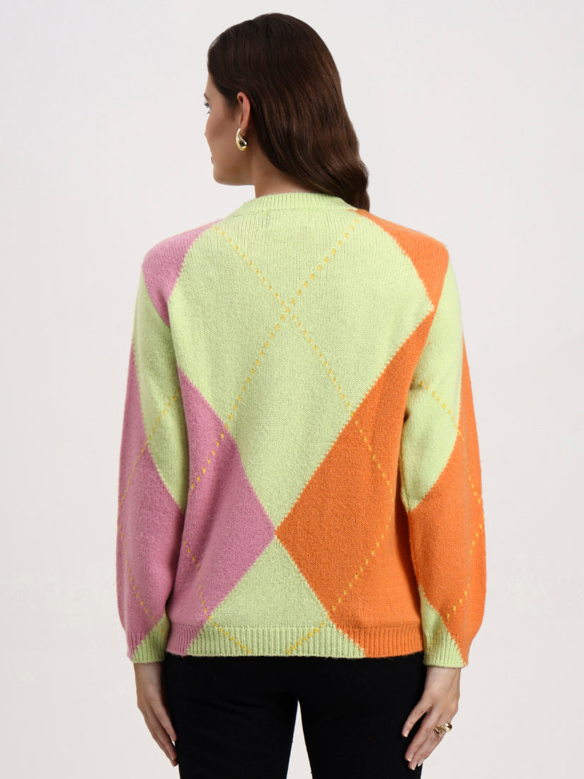 A refreshing sea-green canvas fused with fuchsia and warm gold, creating a striking geometric pattern. This palette feels playful yet polished, evoking exotic escapes while staying rooted in classic argyle charm.