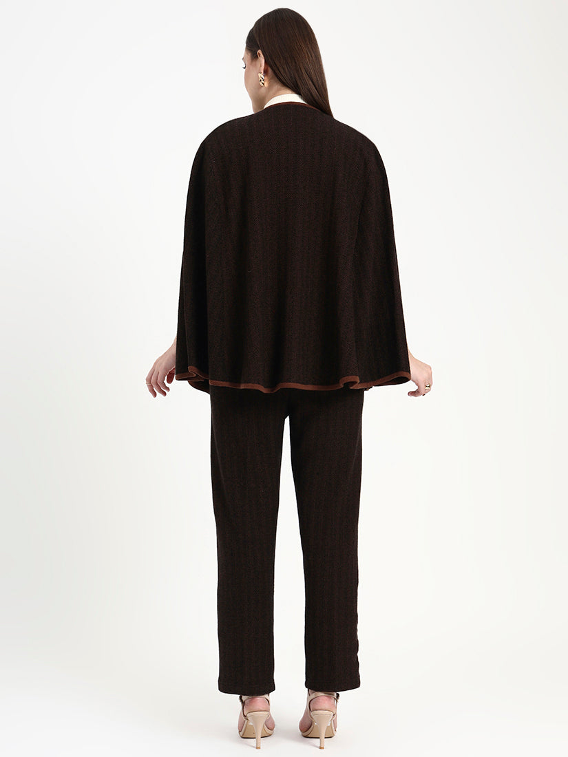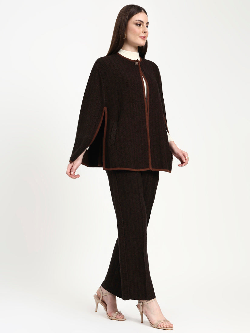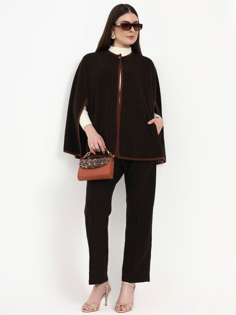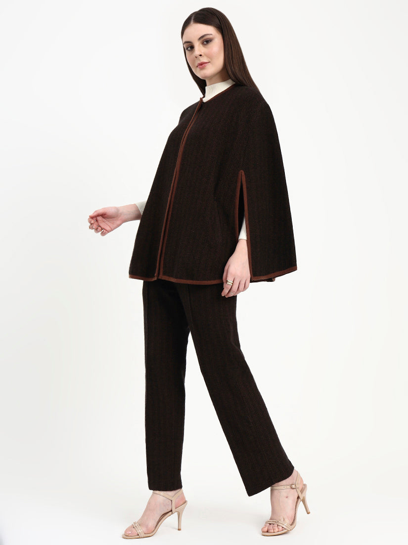 Umber Crest Draped Cape Set evokes the essence of calm confidence. Its refined form and flowing movement define effortless style, a graceful blend of heritage texture and contemporary line that feels both classic and current.