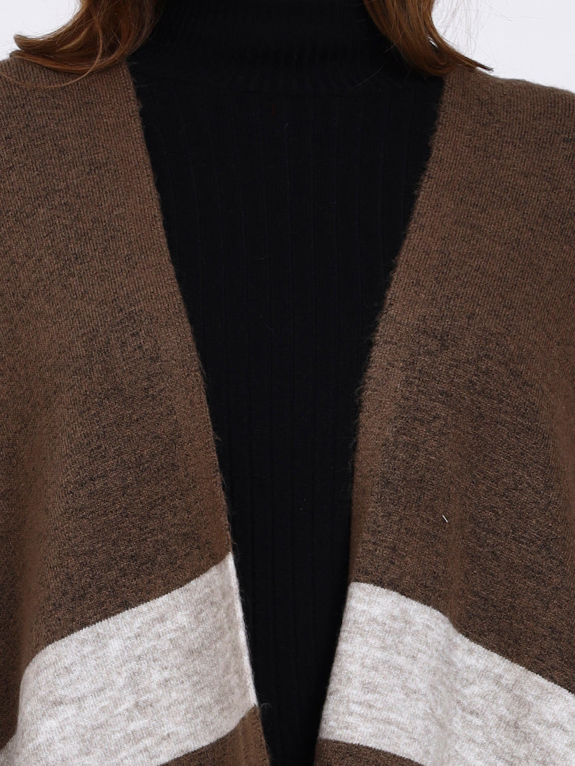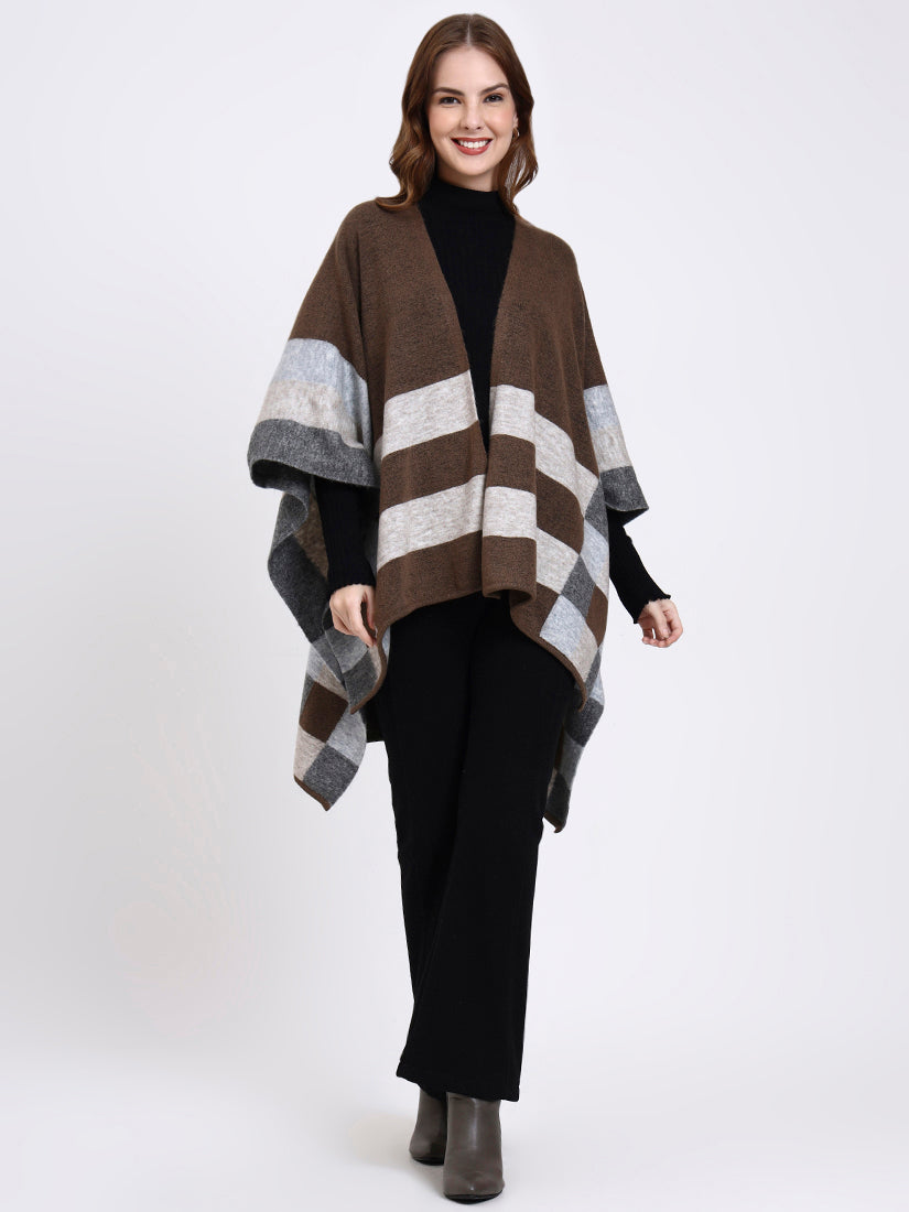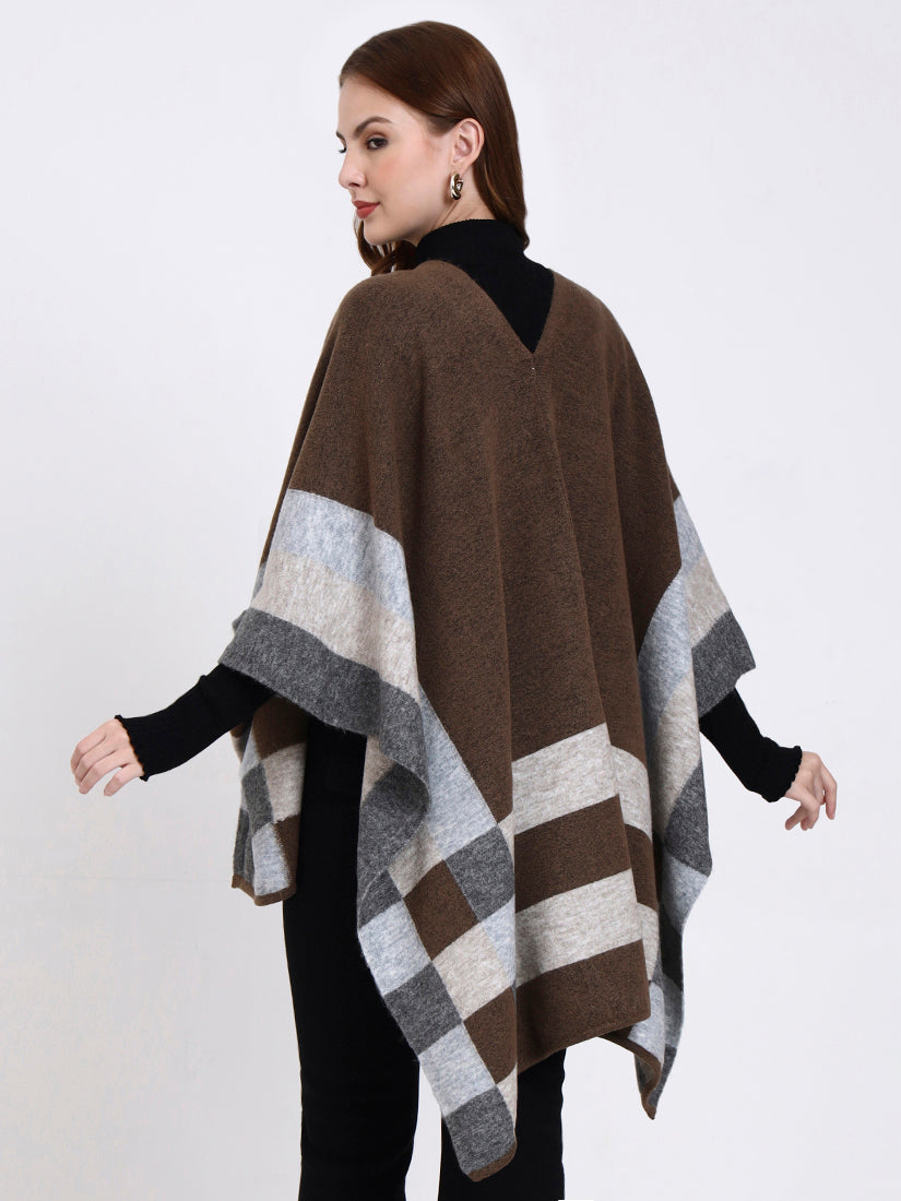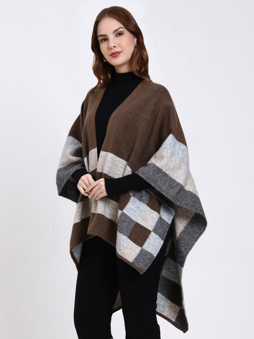 Earthy medium brown grounded with textured checks in taupe and olive hues. The natural palette reflects warmth and heritage craftsmanship, making it a graceful layering essential.