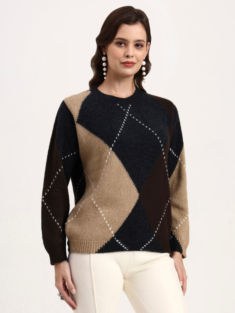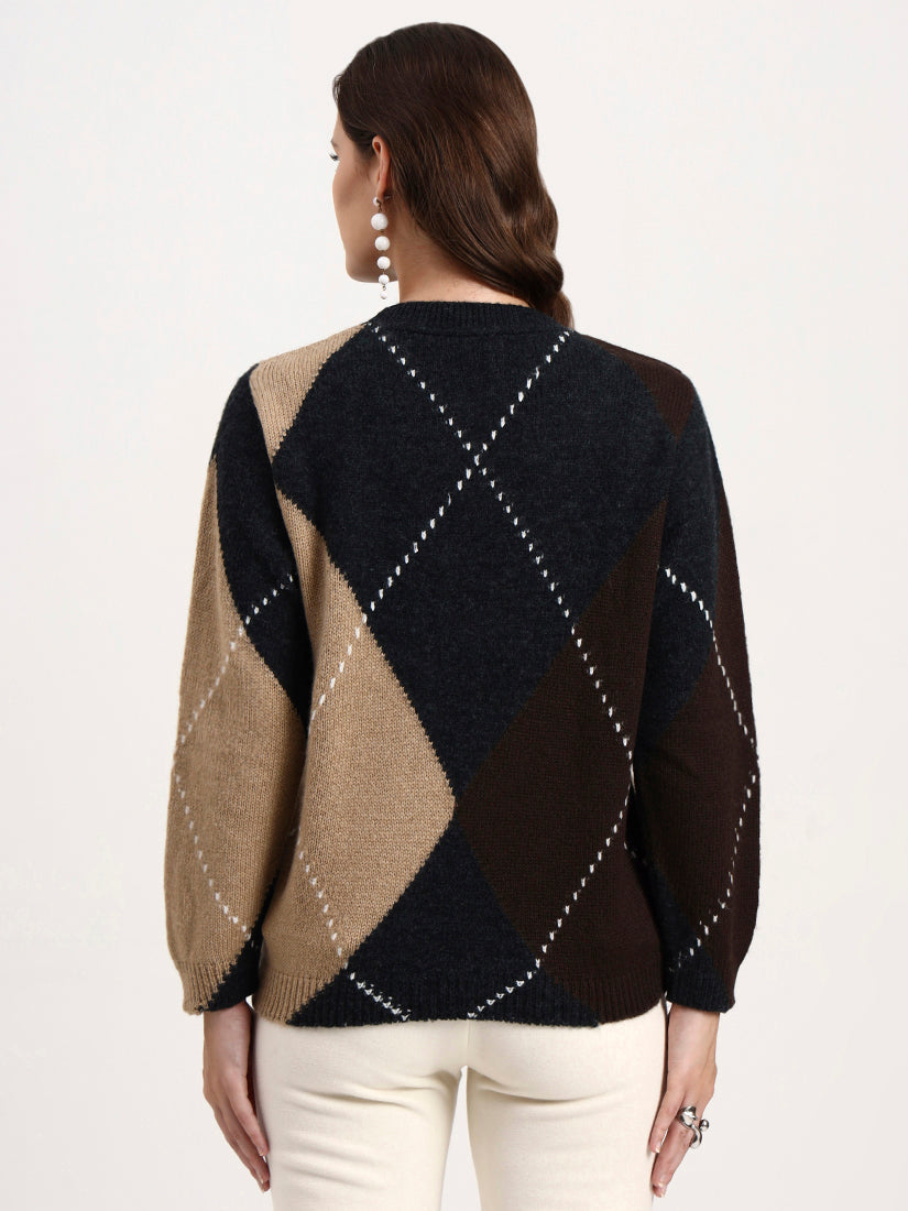 Soft city grey layered with clean ivory and muted blush undertones, arranged in sharp diamond symmetry. Subtle yet modern, it bridges timeless heritage with a contemporary edge for effortless weekday-to-weekend dressing.