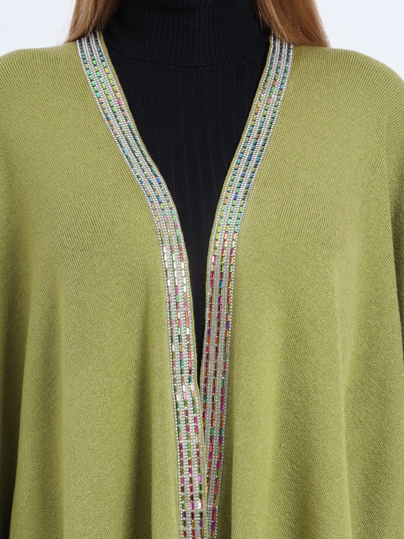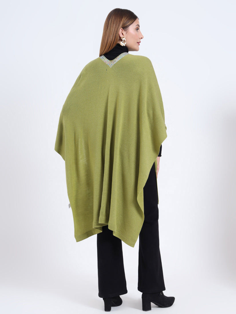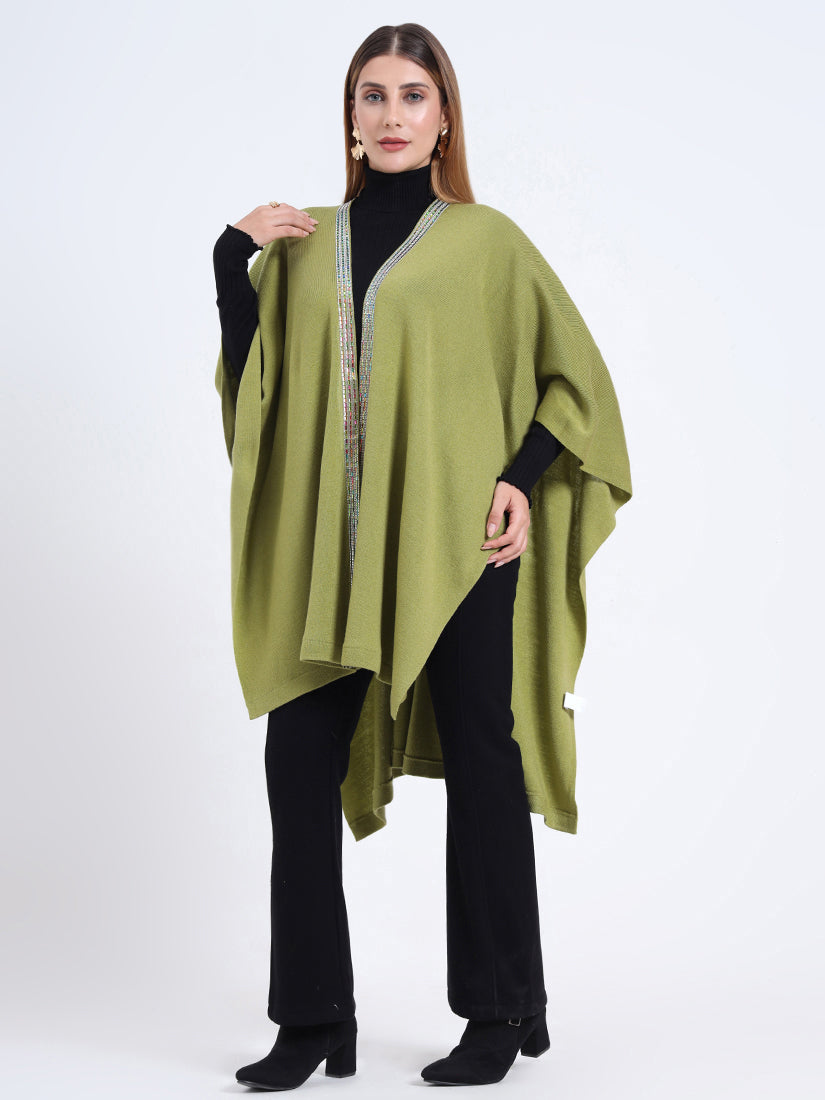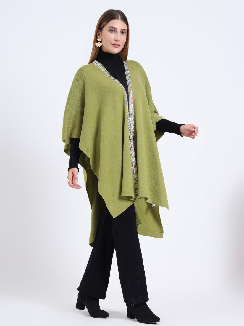 Woven in soft wool blends, the Verdant Luxe Cape embodies the richness of deep green tones, accented with subtle metallic shimmer. A timeless layer that captures both natural elegance and modern refinement.