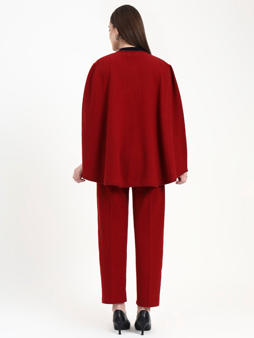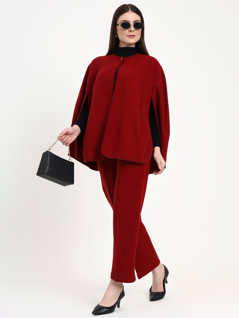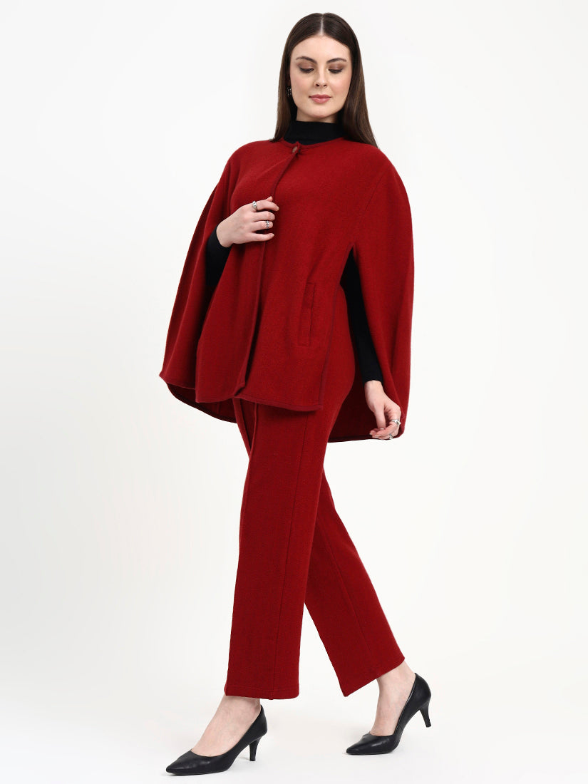 A statement of quiet power, the Verona Rouge Cape Co-ord Set blends sculptural form with effortless movement. The flowing cape silhouette and tailored trousers create a refined harmony, sophisticated, warm, and beautifully composed.