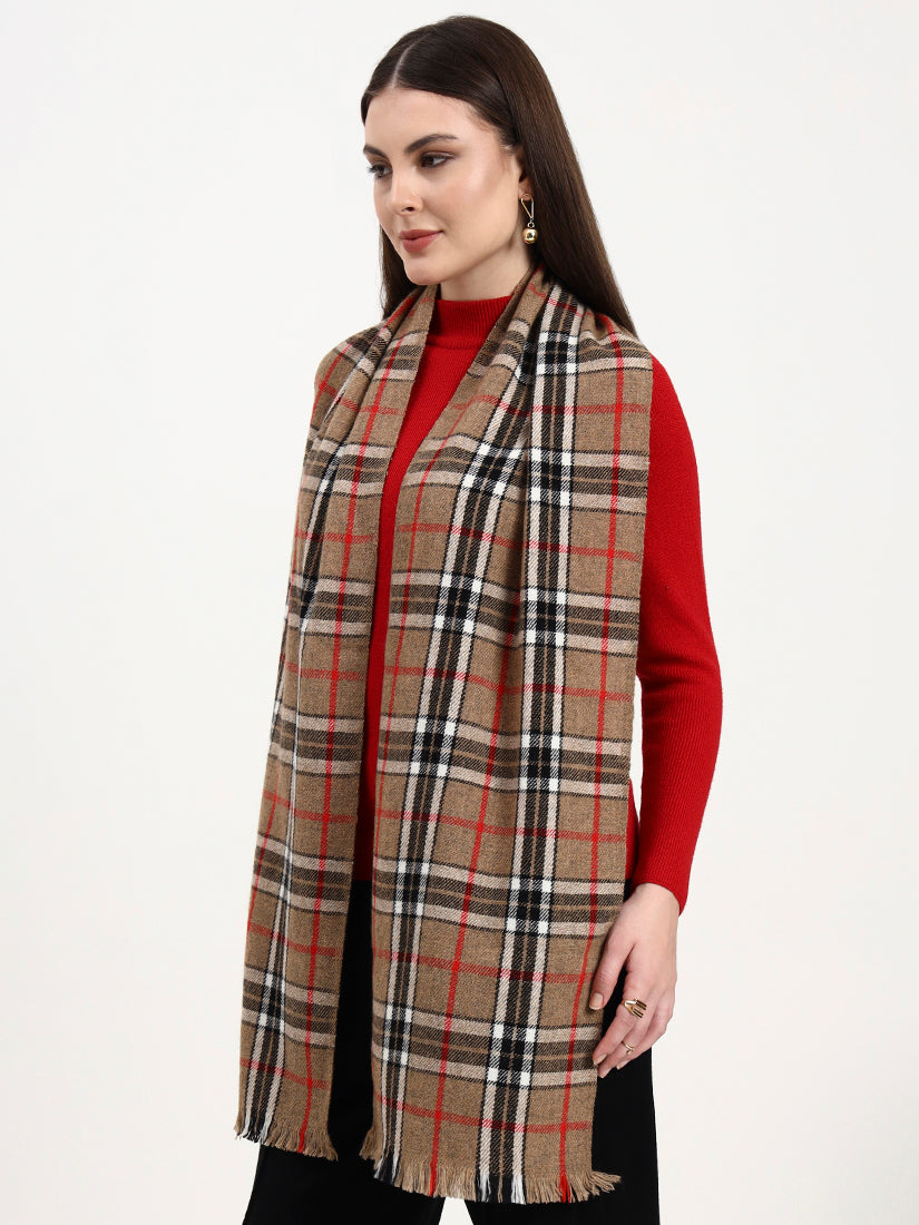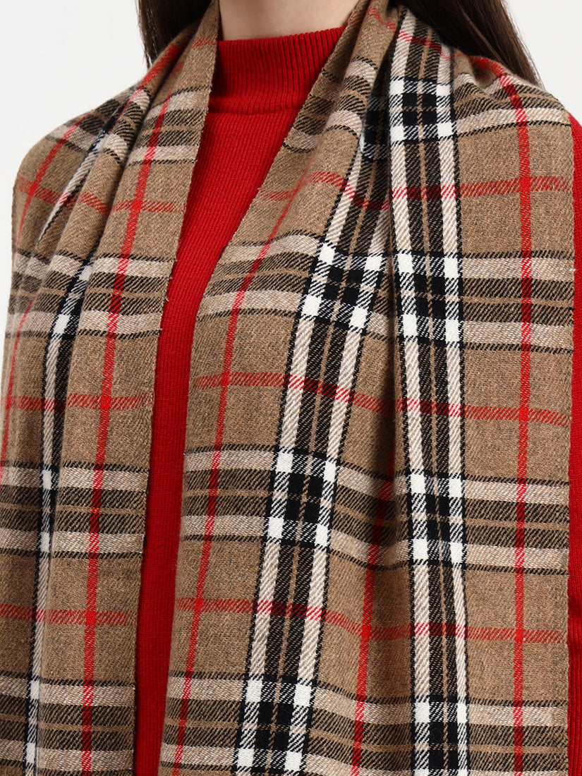 Classic meets contemporary in this heritage check scarf, woven in tones of warm beige, camel, and red. The soft texture and refined pattern echo timeless Scottish craftsmanship, bringing an effortless polish to everyday layering