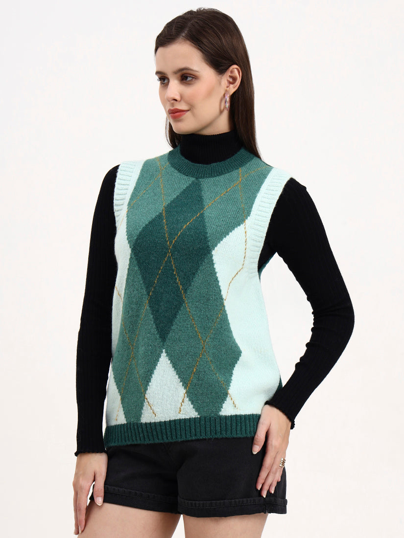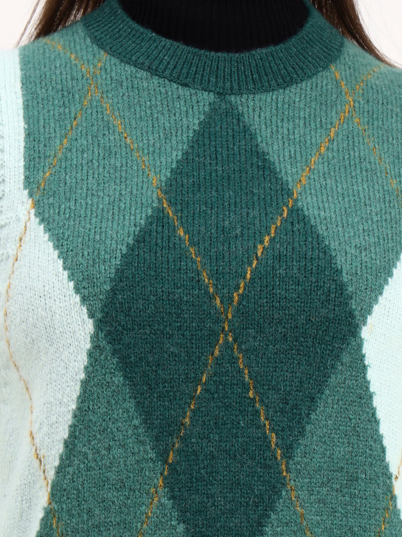 A serene green canvas layered with soft diamond geometry in gentle ivory and forest undertones. The subtle gradation brings depth while staying polished — a modern nod to heritage argyle for quiet sophistication.